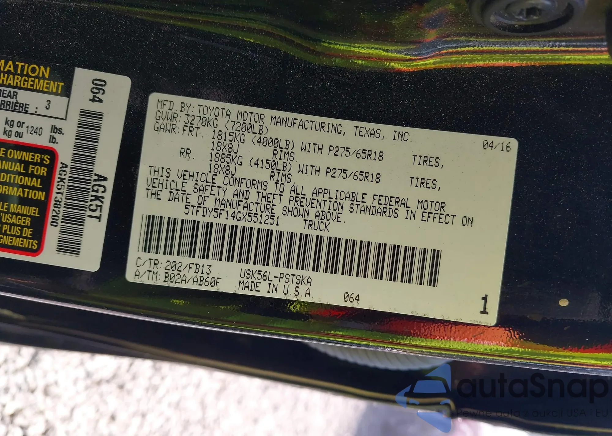 • VIN 5TFDY5F14GX551251