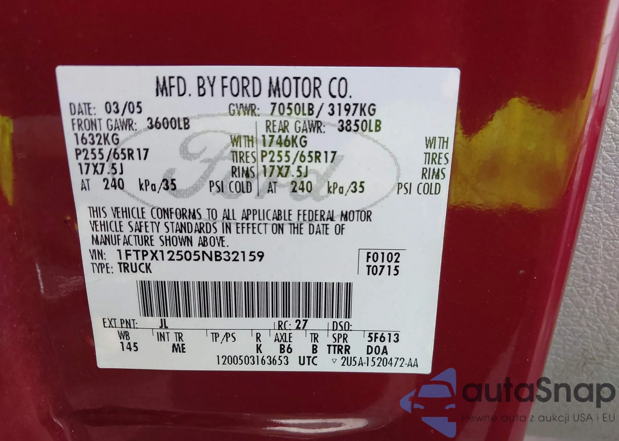 • VIN 3FMTK1SU2RMA20530