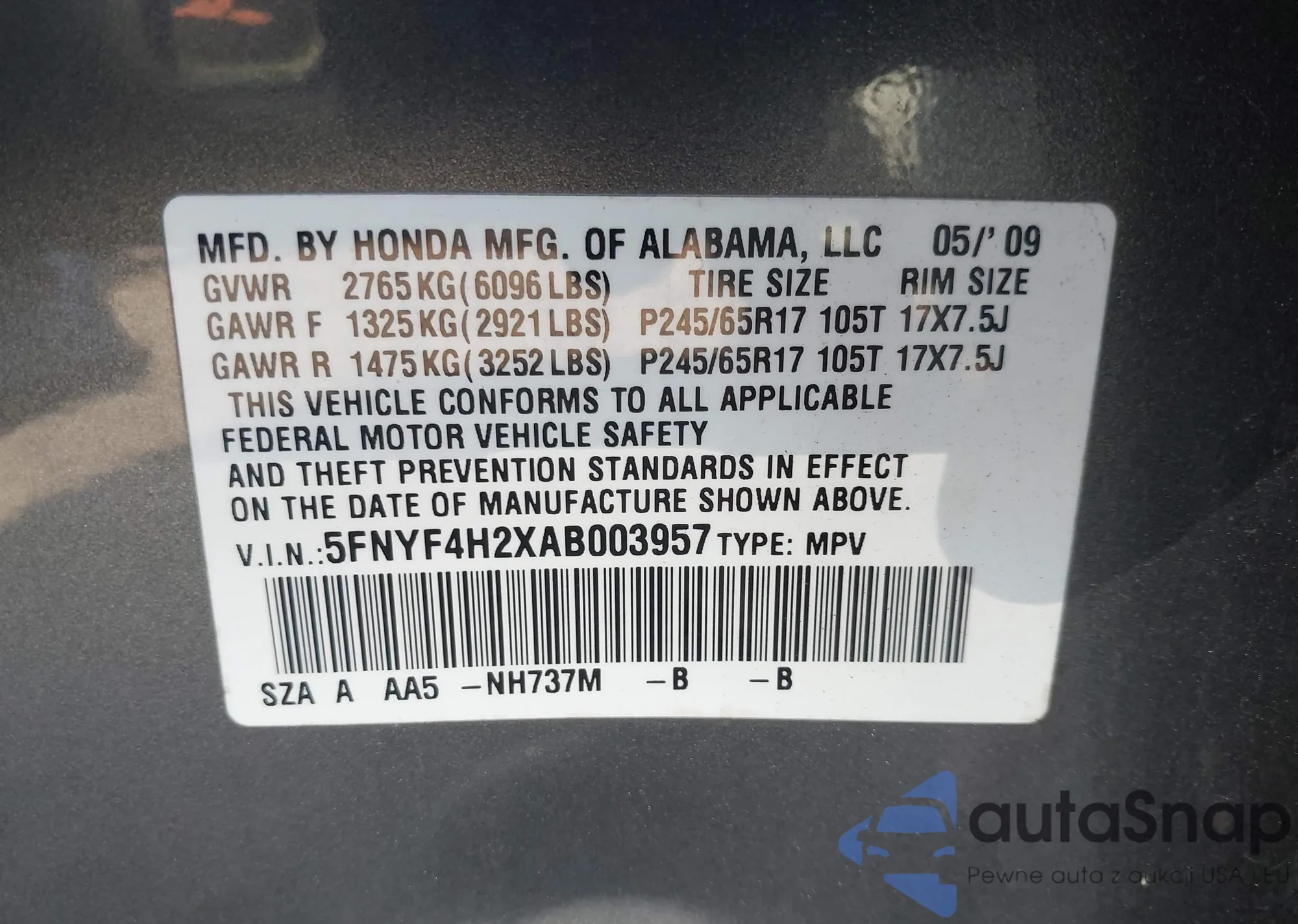 • VIN SHHFK7H32KU217788