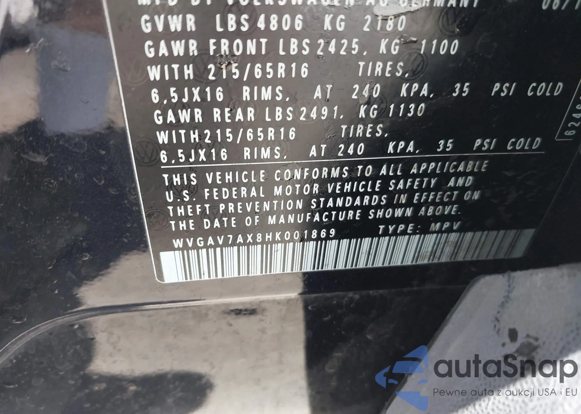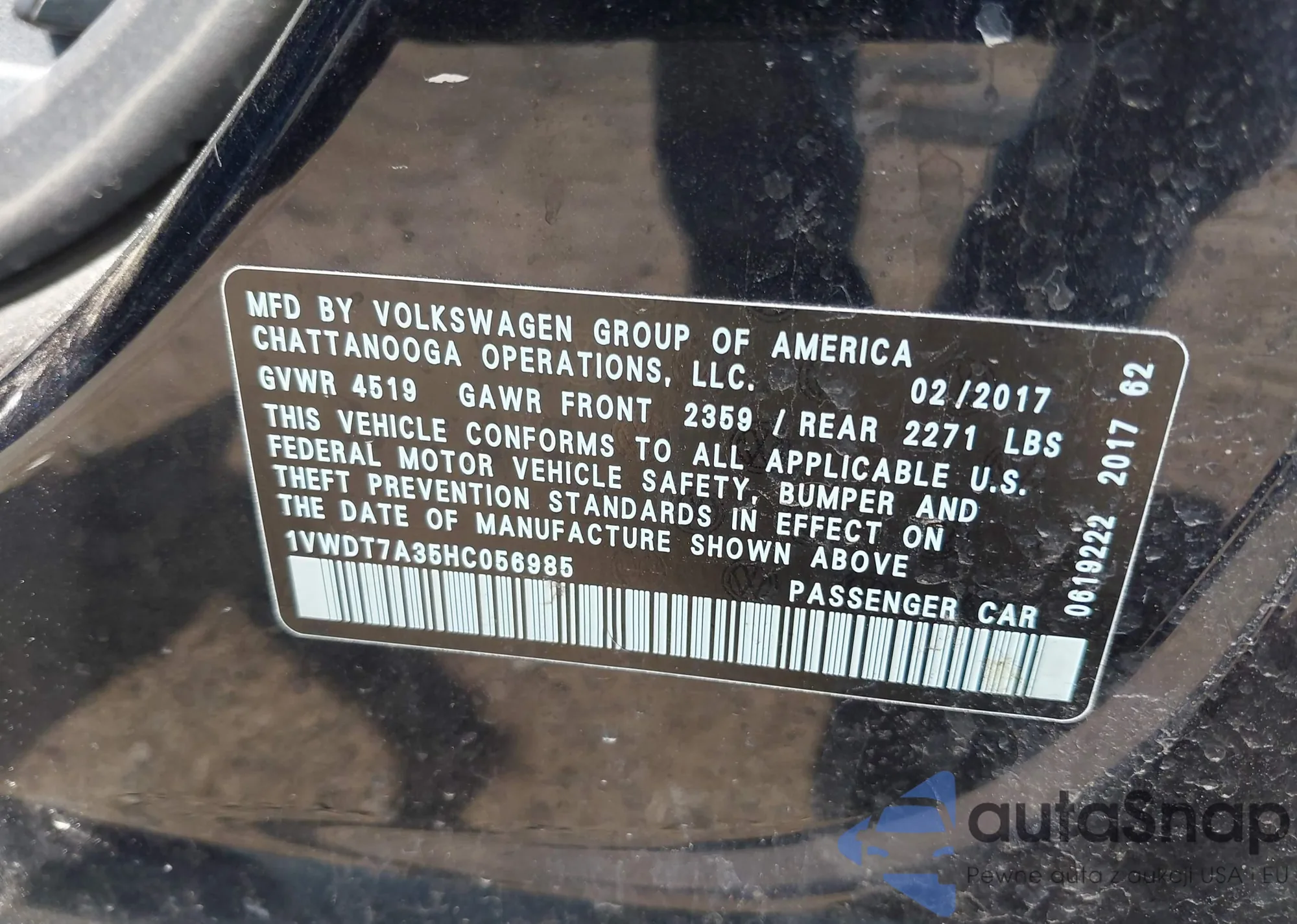 • VIN 3VW167AJ0HM367876