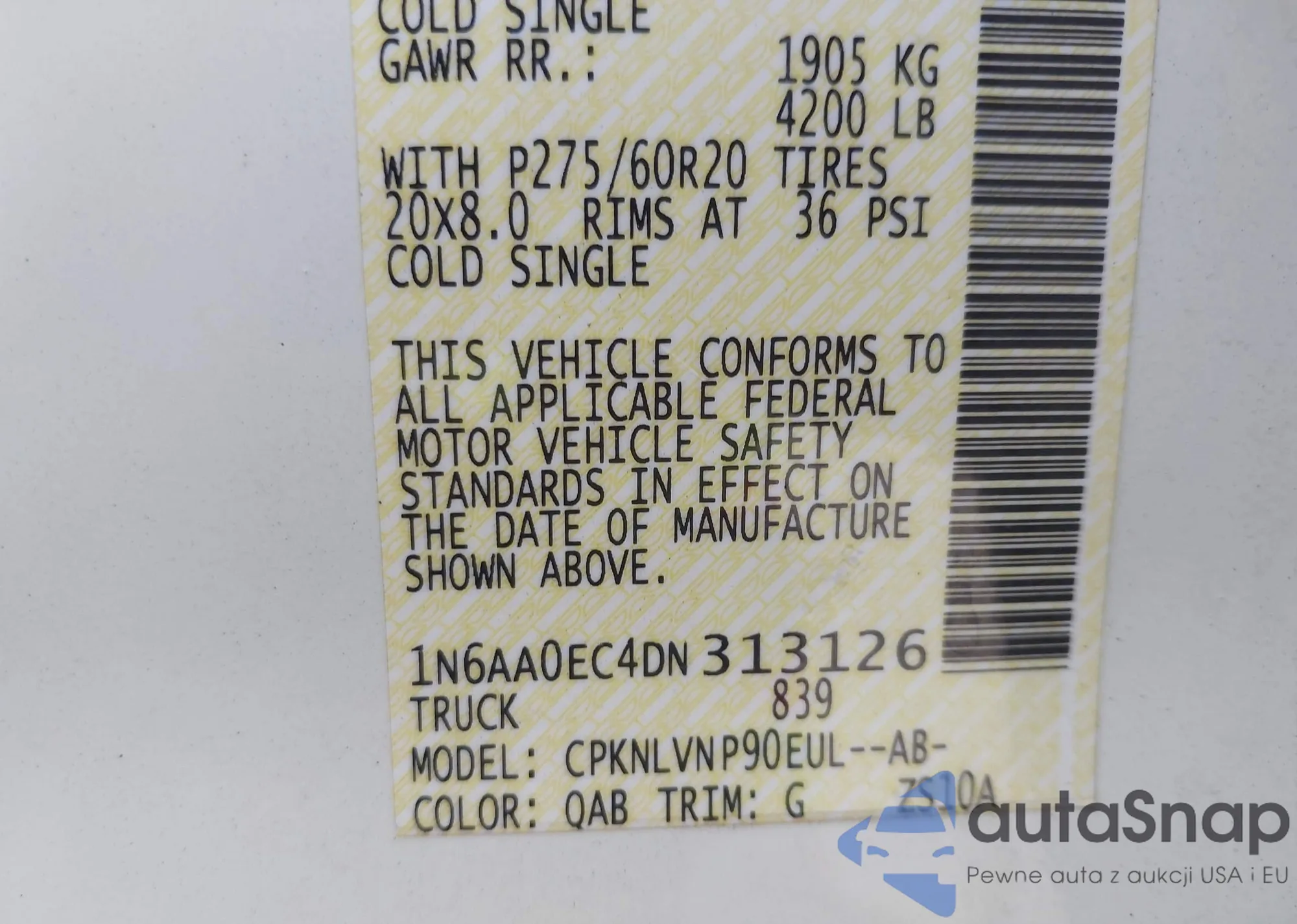 • VIN 1N6AA0EC4DN313126