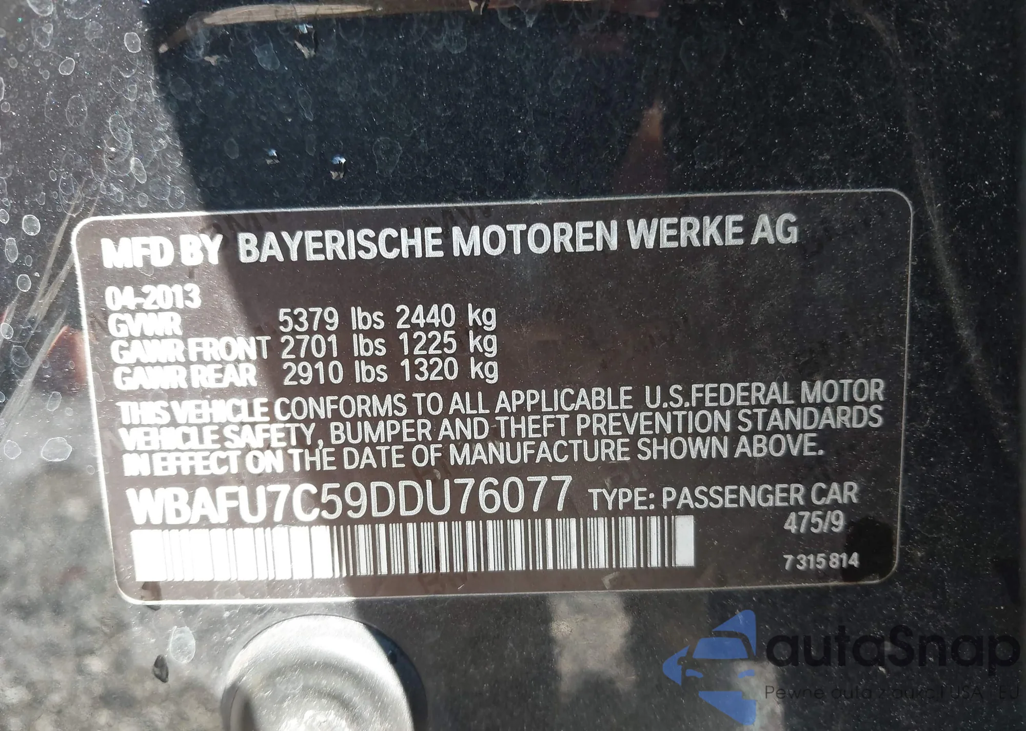• VIN WBAFU7C59DDU76077