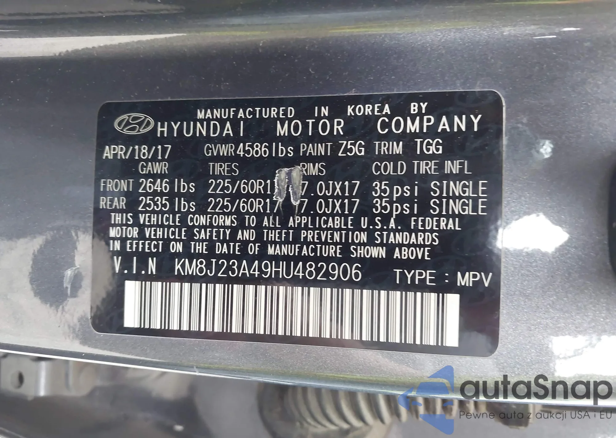 • VIN KM8J23A49HU482906