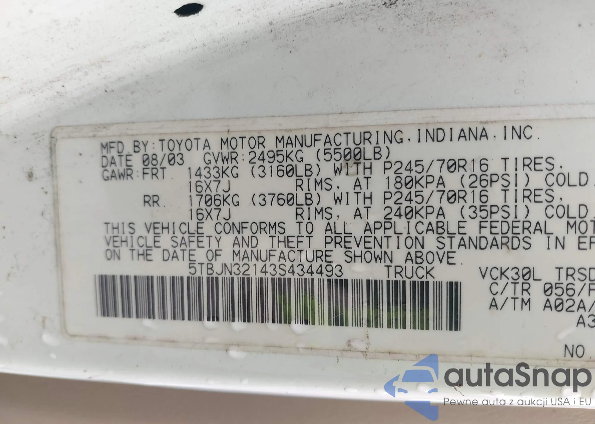 • VIN 5TBJN32143S434493