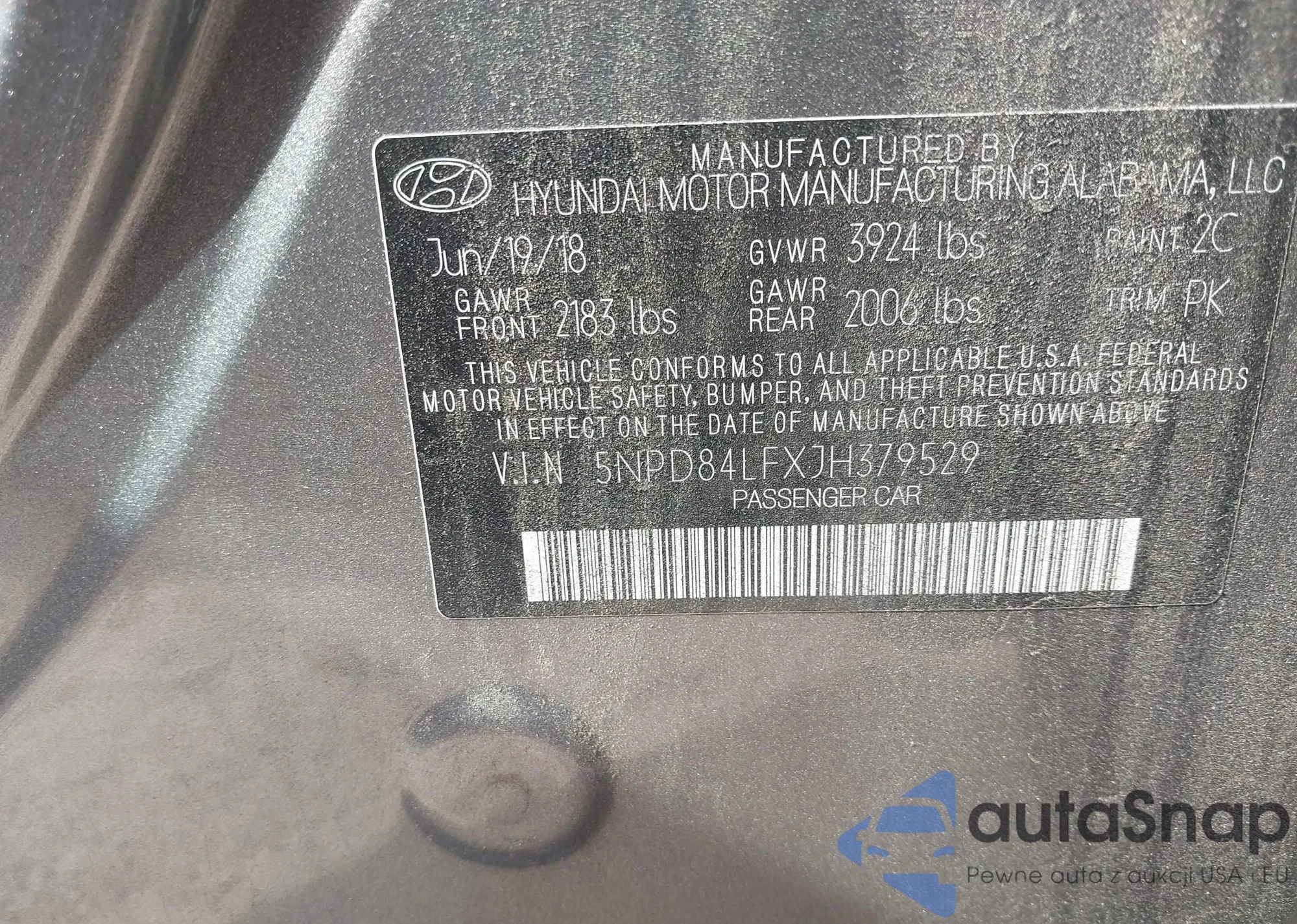 • VIN 5NMS5CAA2KH058407