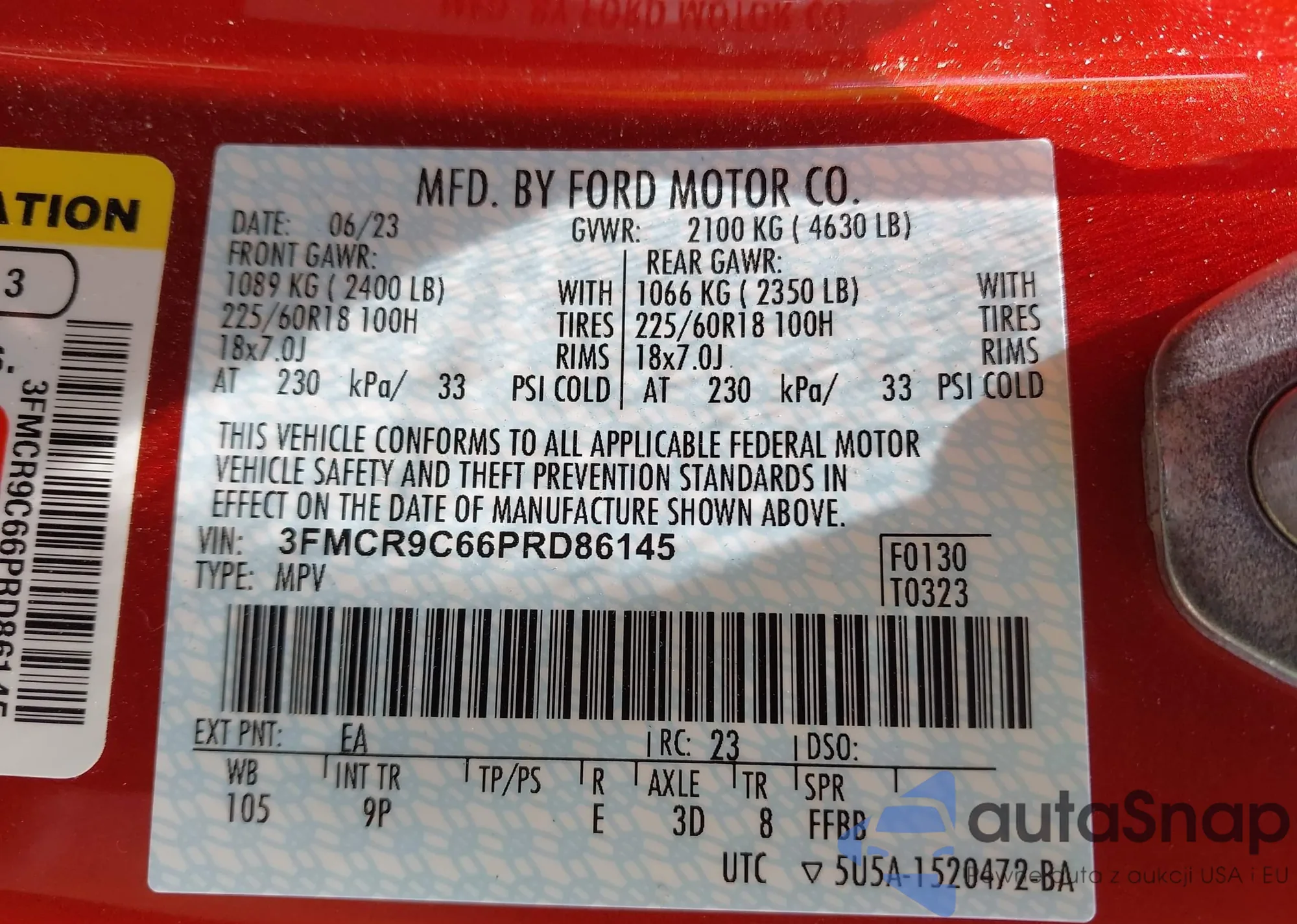 • VIN 3FMCR9C66PRD86145