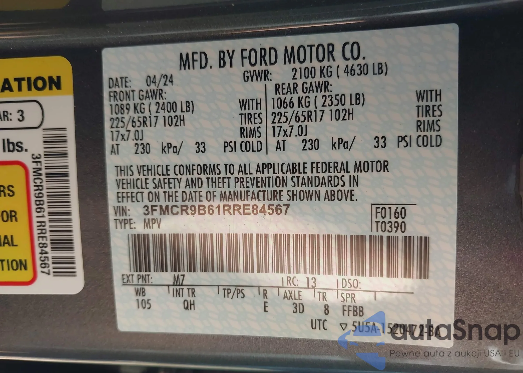 • VIN 3FMCR9B61RRE84567