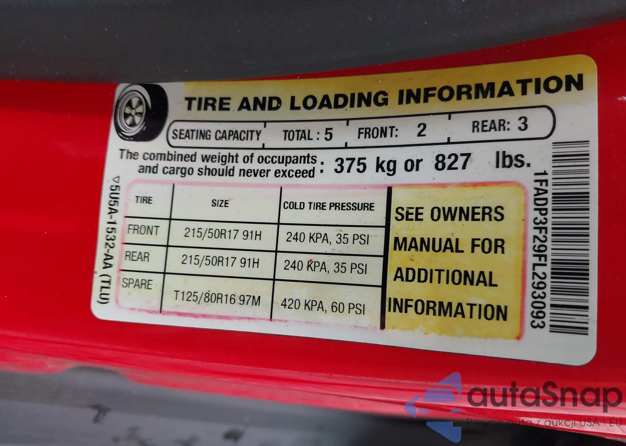 • VIN 1FADP3F29FL293093
