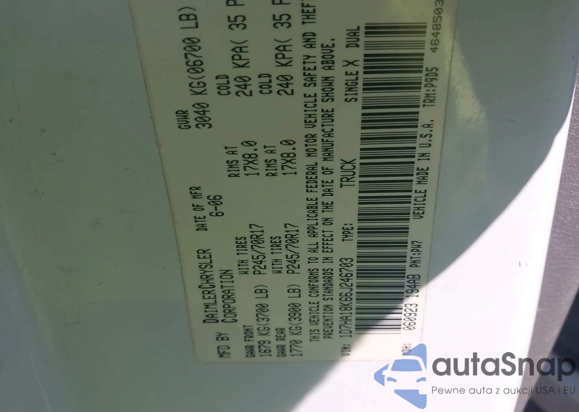 • VIN 1D7HA18K66J246703