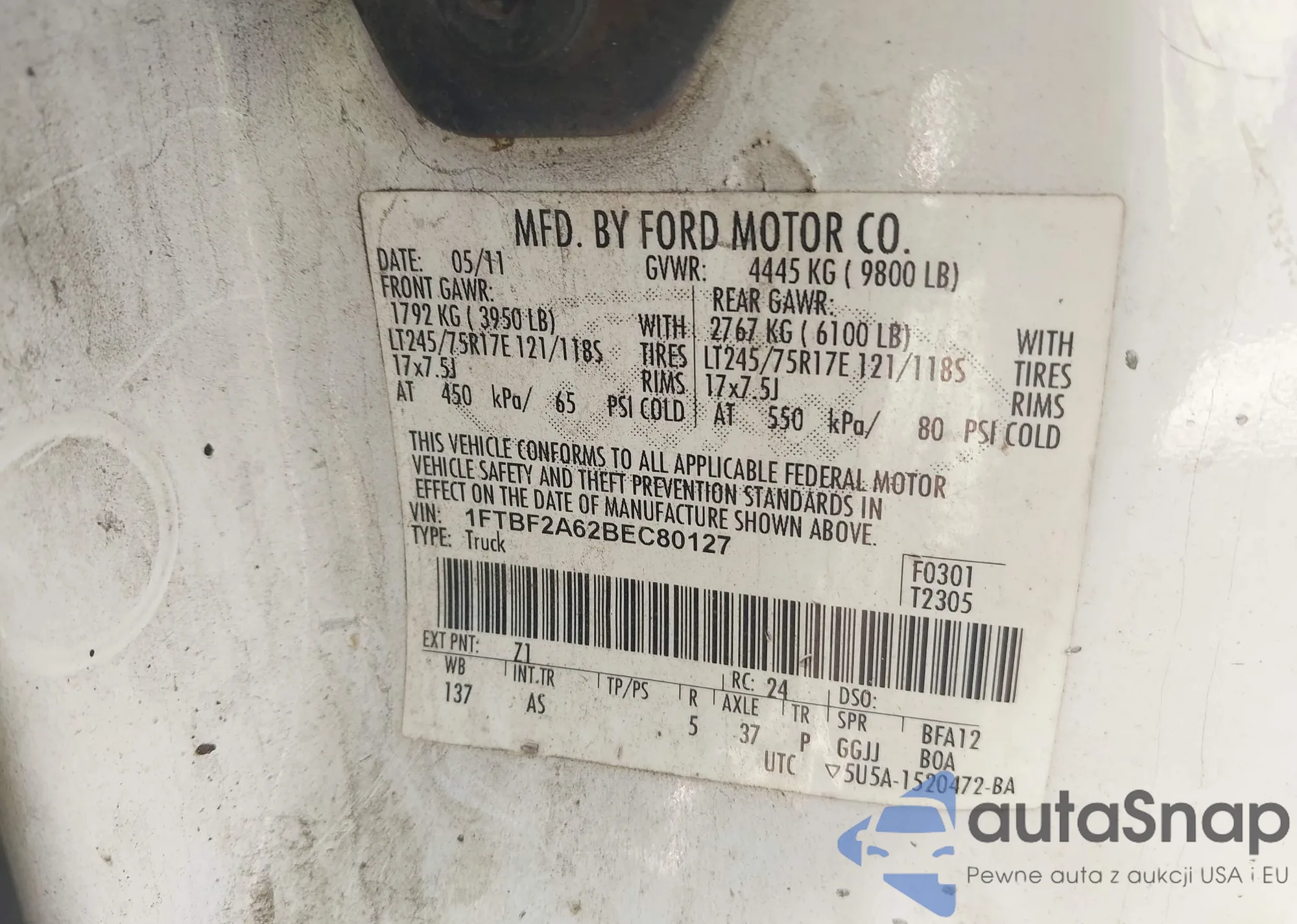 • VIN 1FTBF2A62BEC80127