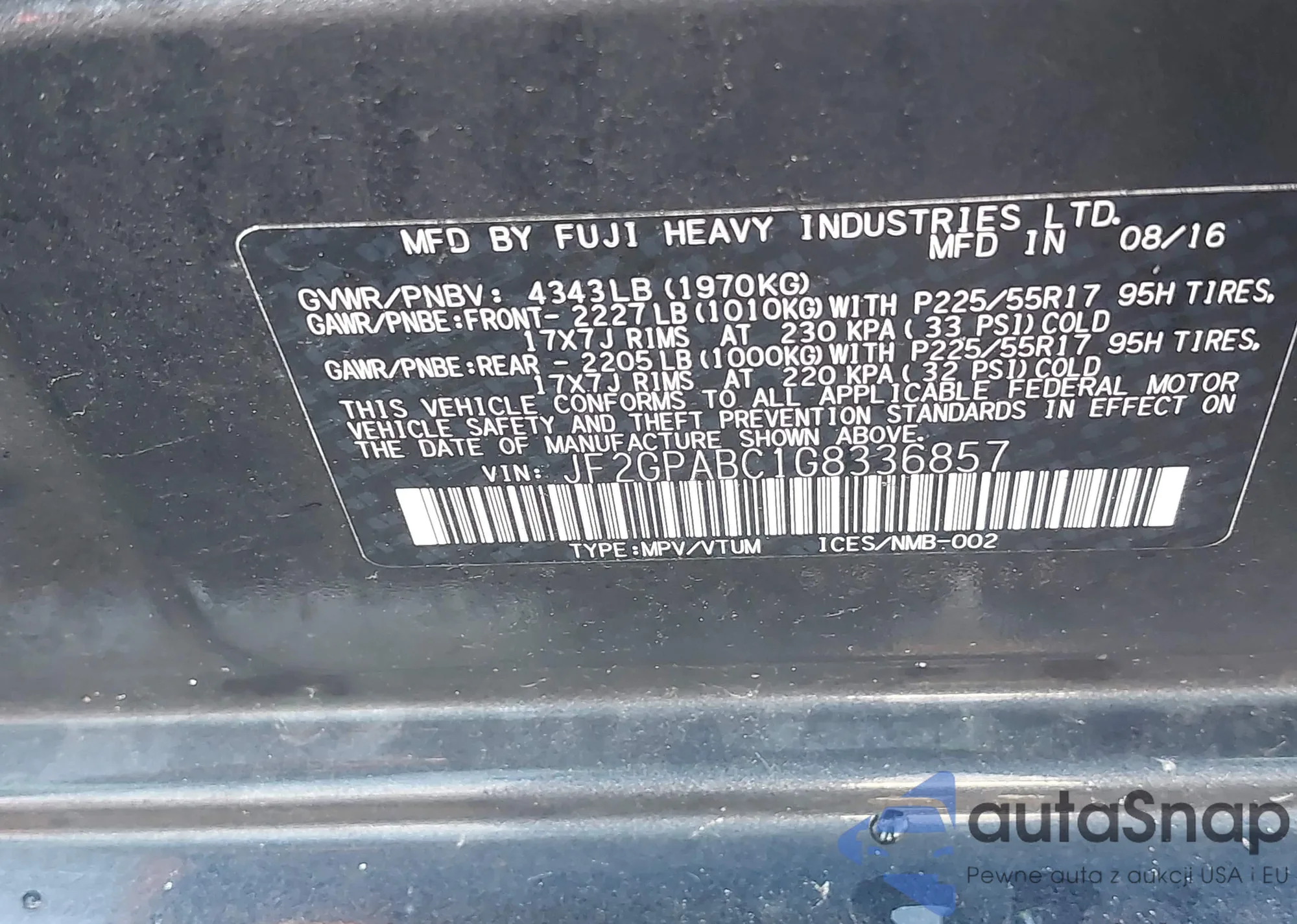 LOT: 42975879 VIN: 4S4BRBAC3B3329906