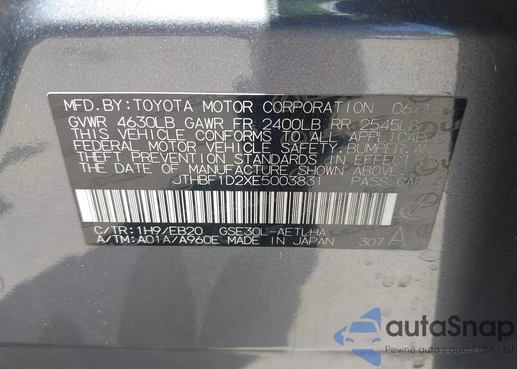 LOT: 42806826 VIN: JTHBF1D2XE5003831