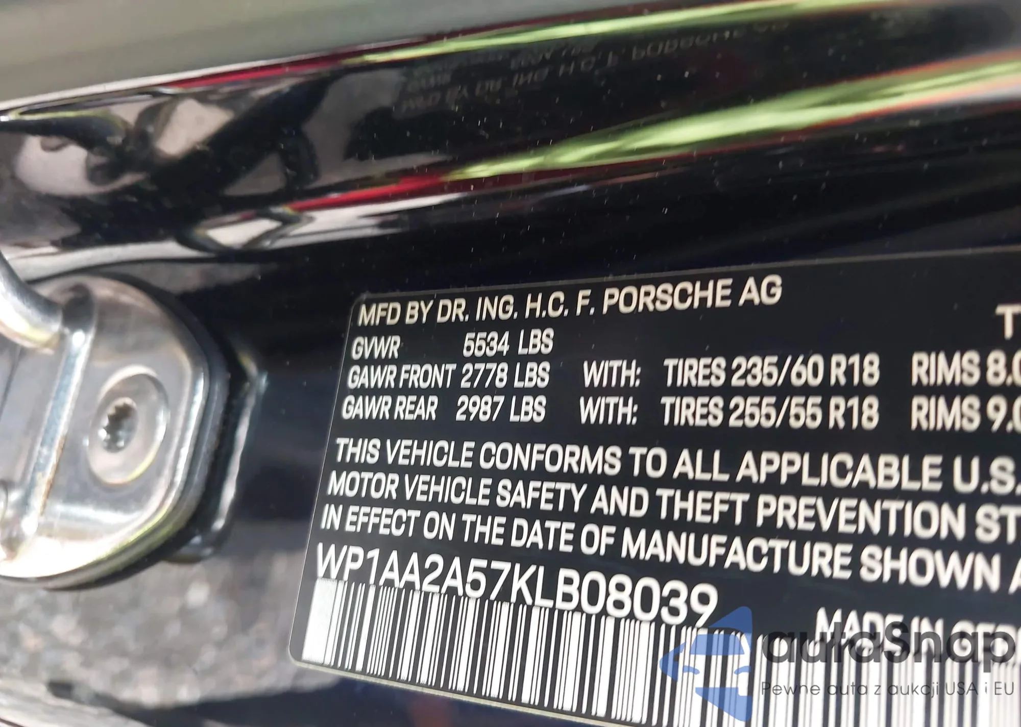 LOT: 42975159 VIN: WP1AA2A57KLB08039