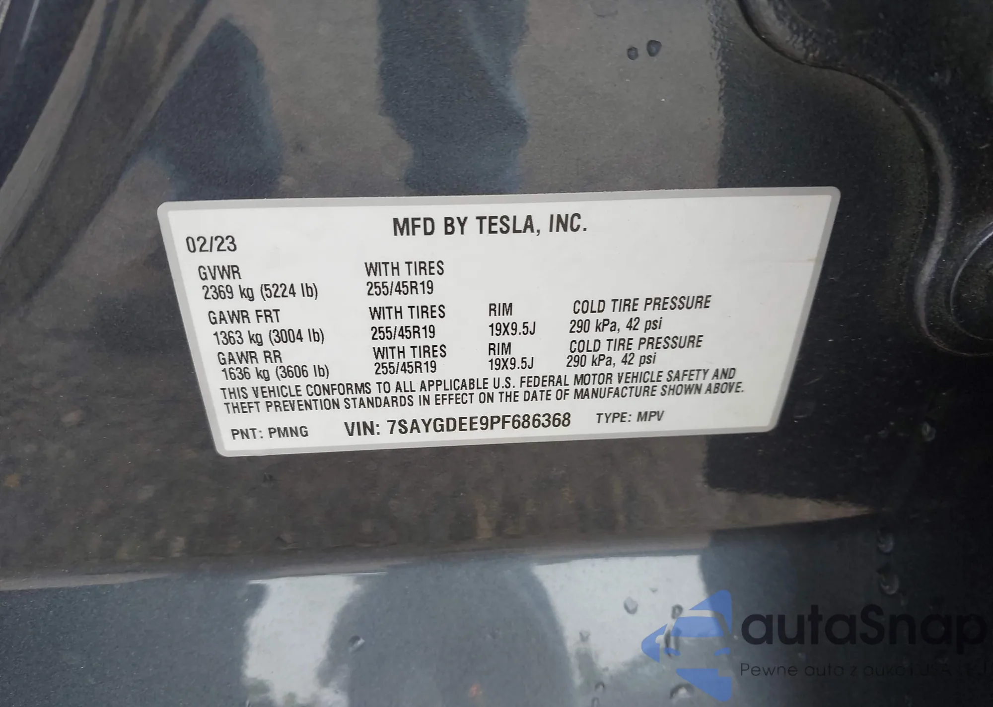 • VIN 7SAYGDEE9PF686368