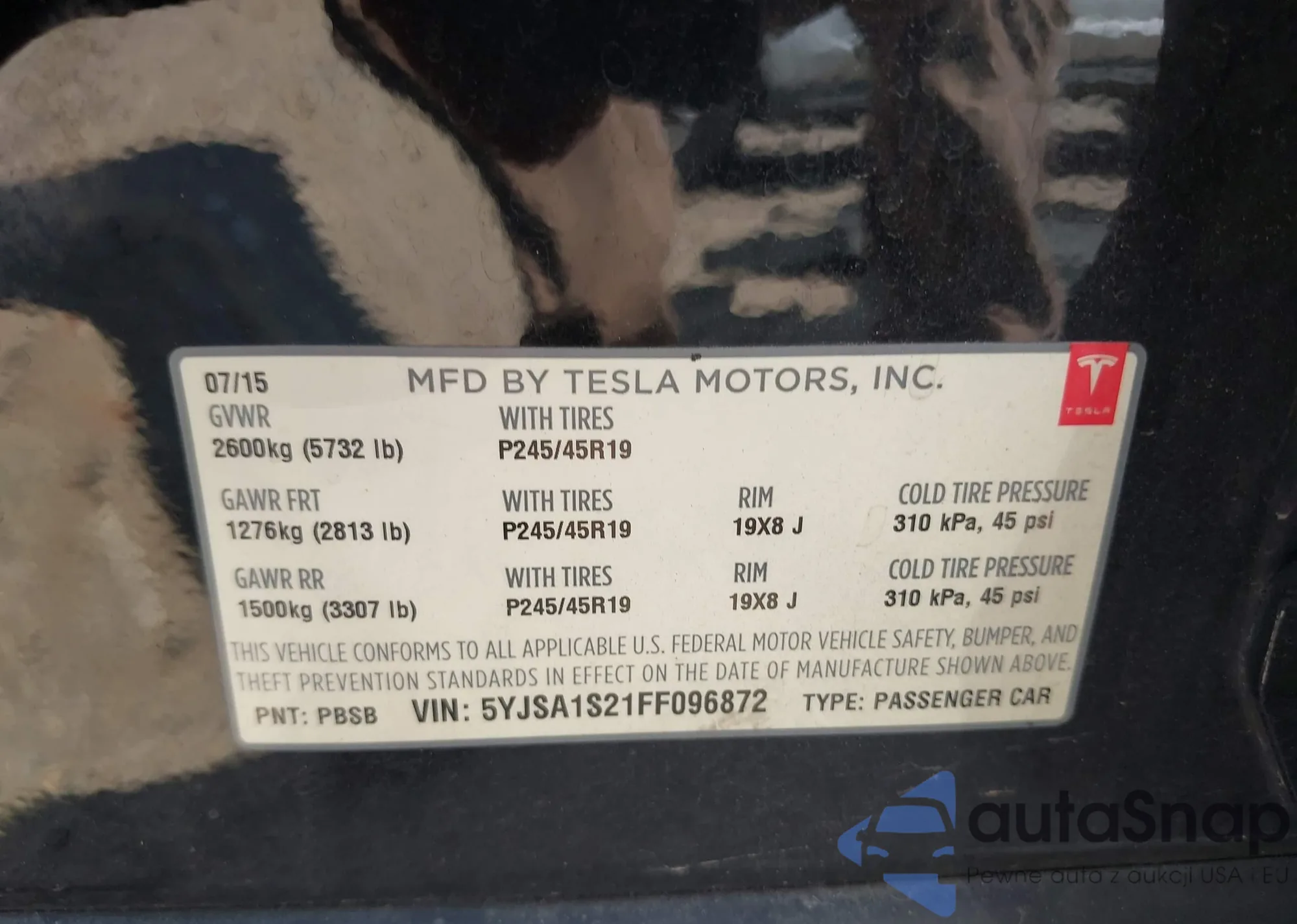 • VIN 5YJSA1S21FF096872
