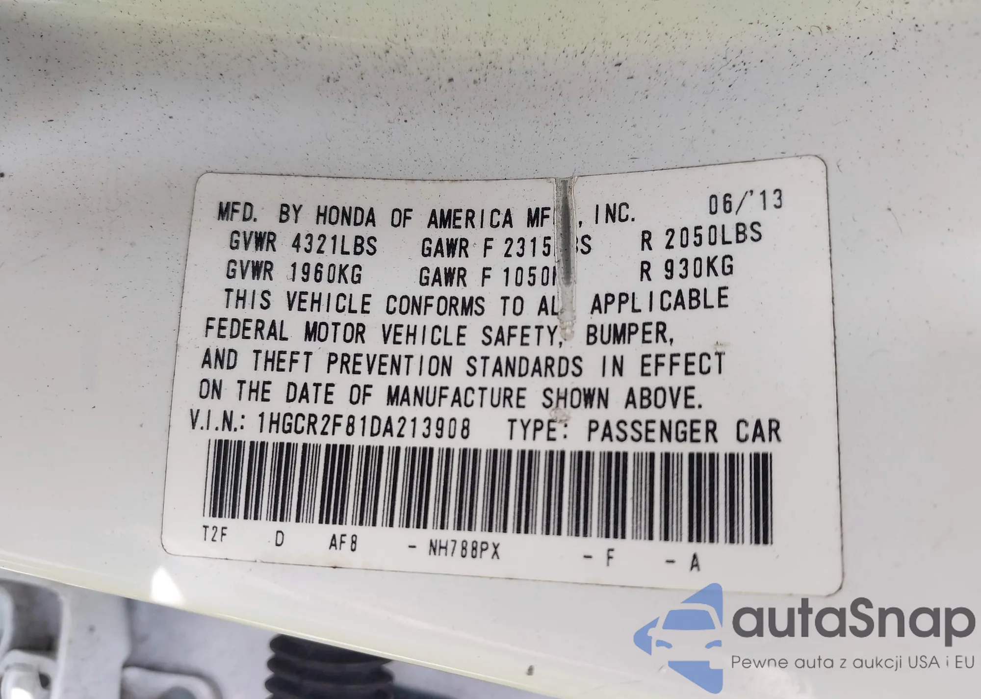LOT: 43124556 VIN: 1HGCP2F67BA063949