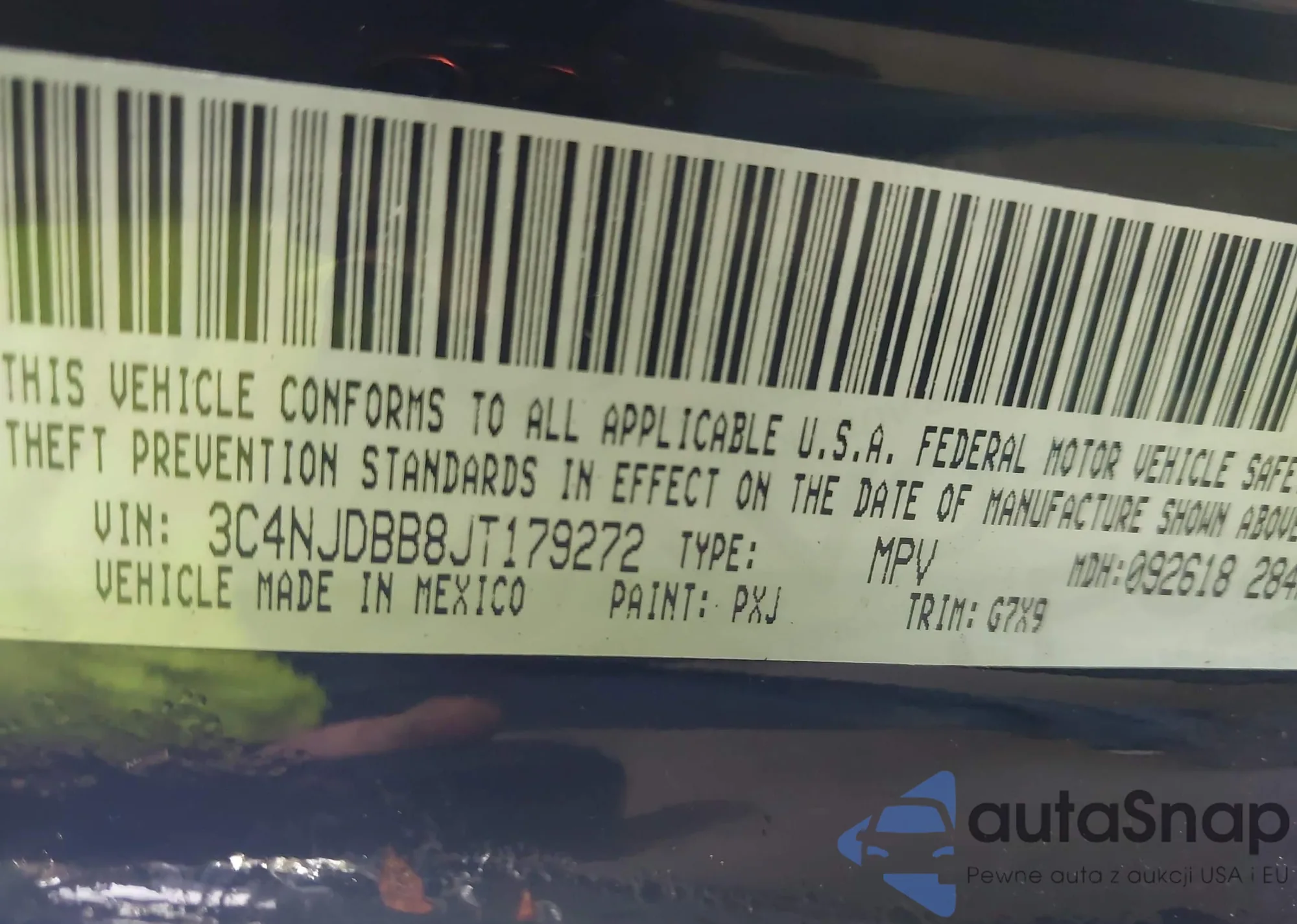• VIN 3C4NJDBB8JT179272