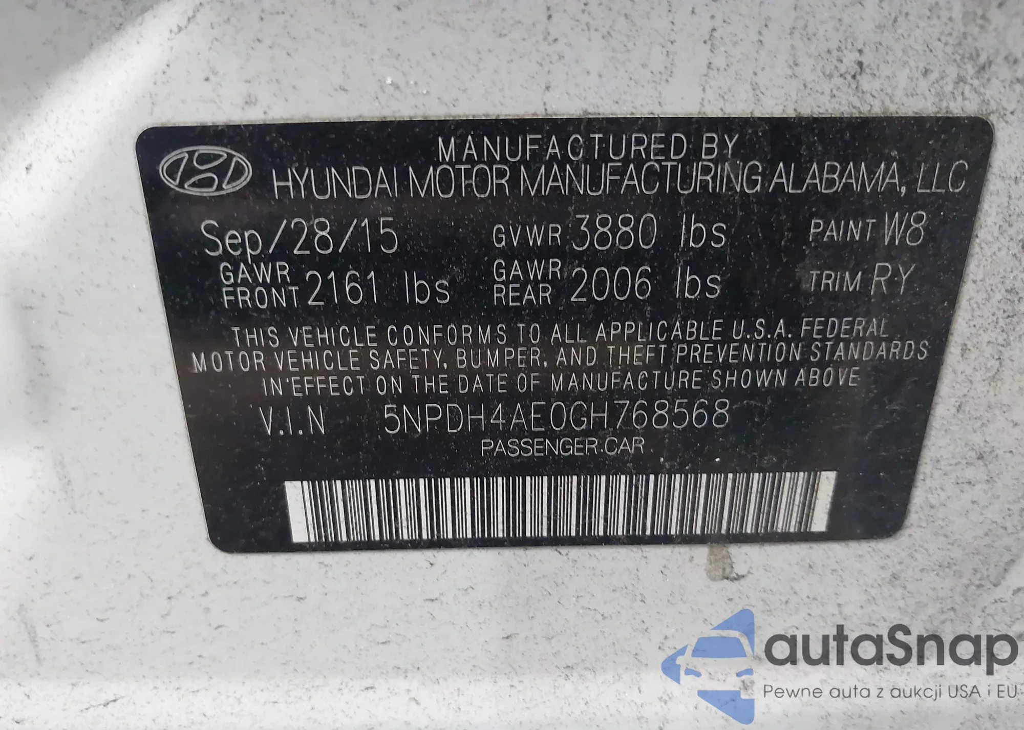 LOT: 42870412 VIN: 5NPDH4AE0GH768568