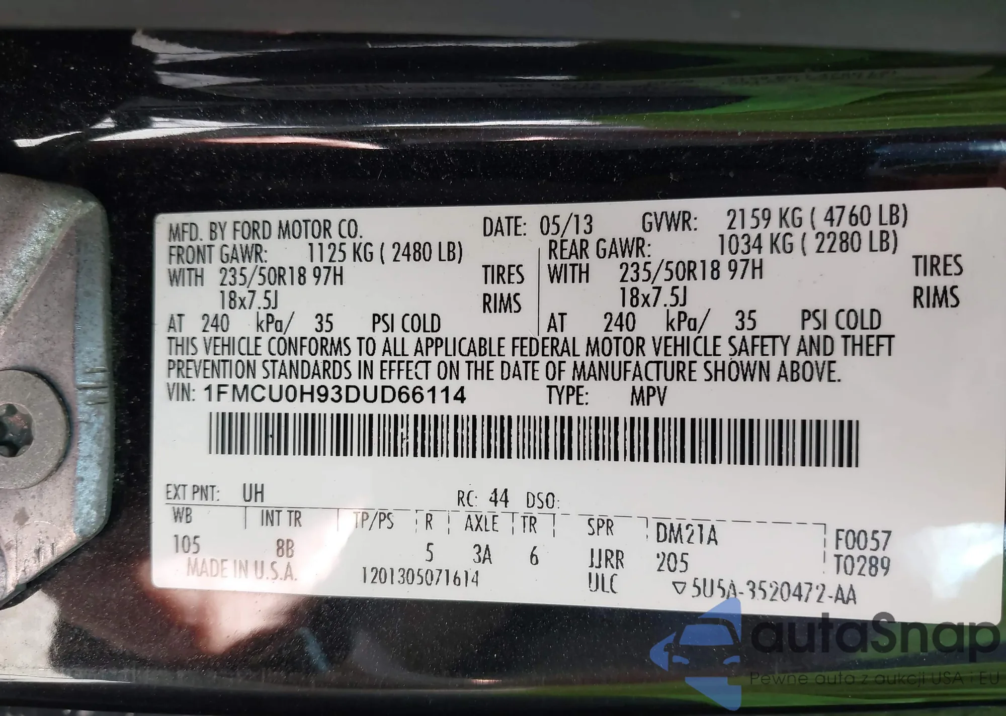 • VIN 1FMCU0H93DUD66114