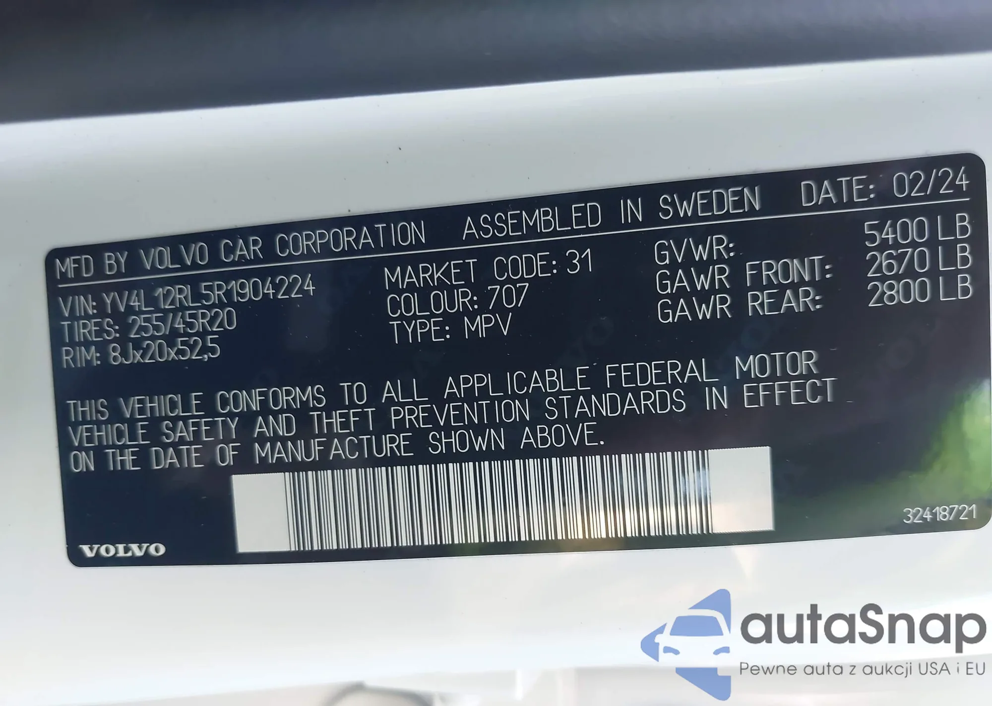 LOT: 43140418 VIN: YV4BZ982X81031090