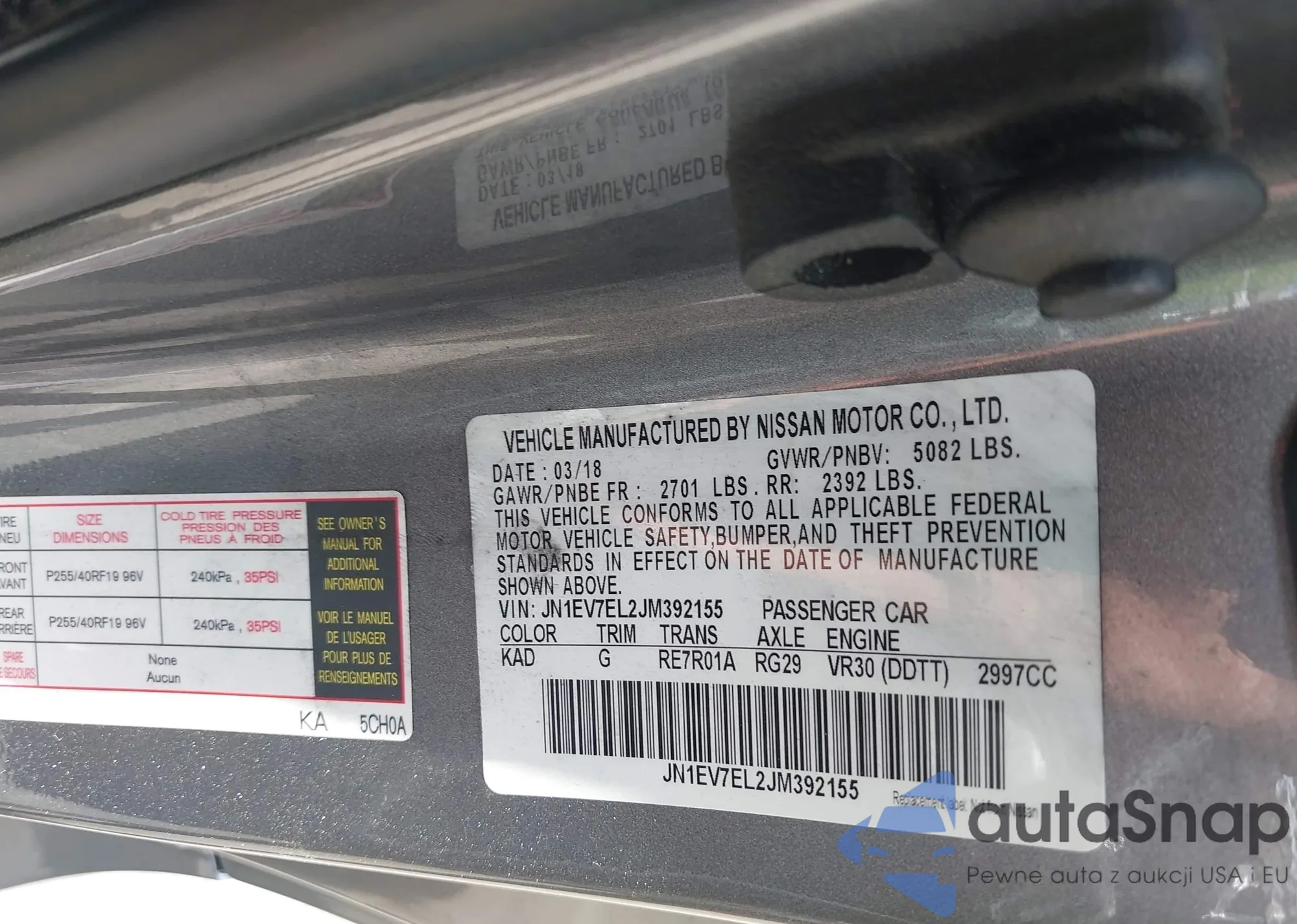 LOT: 42723391 VIN: JN1EV7EL2JM392155