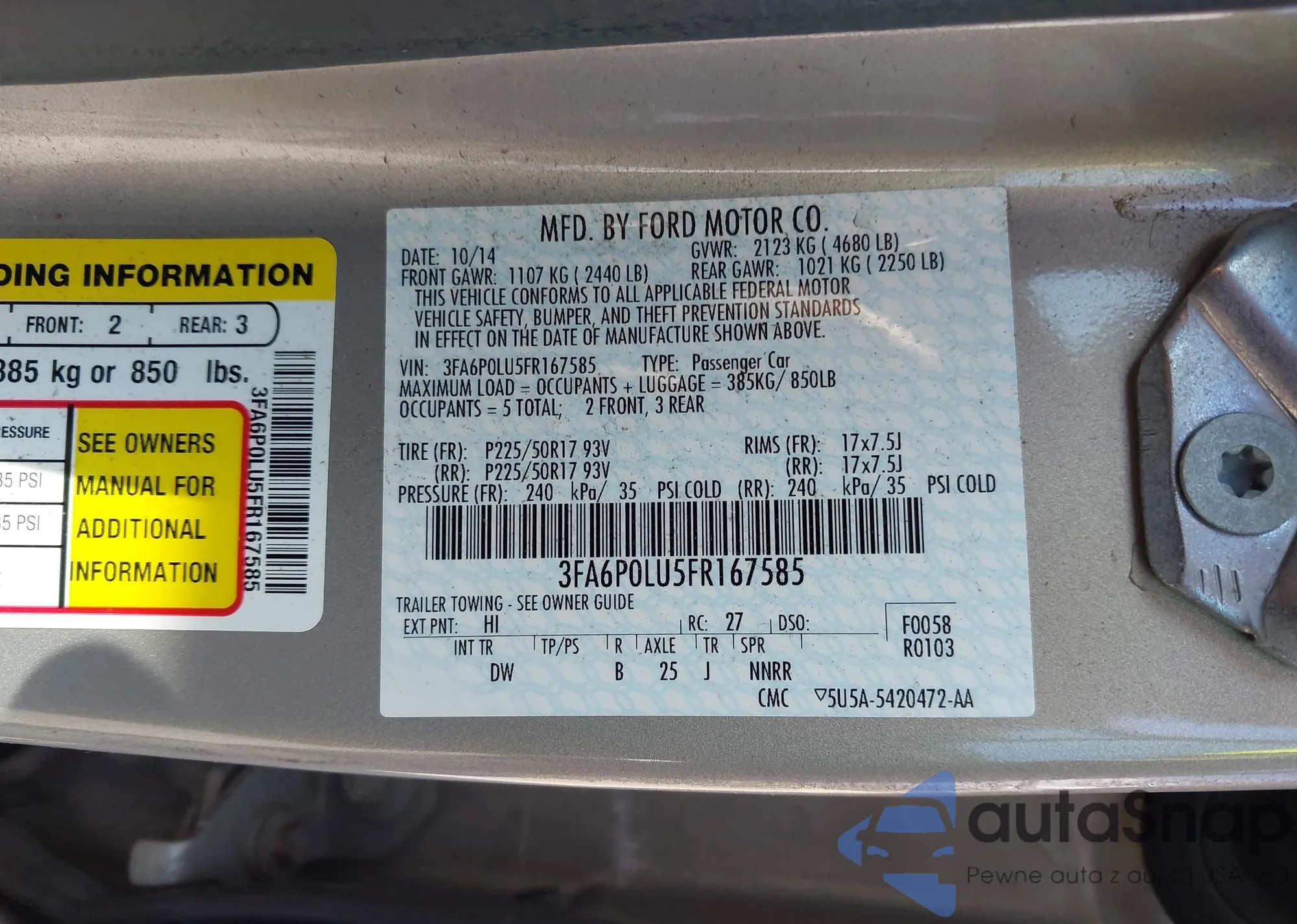 • VIN 3FA6P0LU5FR167585