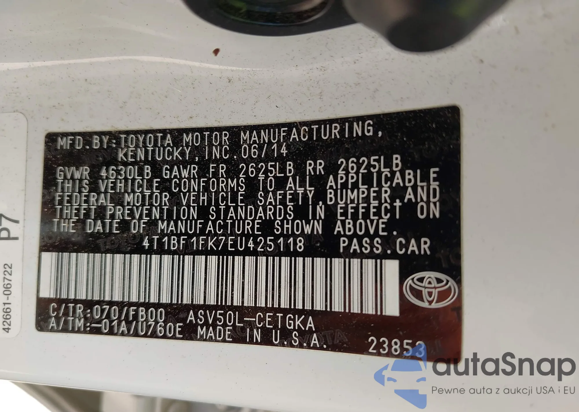 • VIN 4T1BF1FK7EU425118