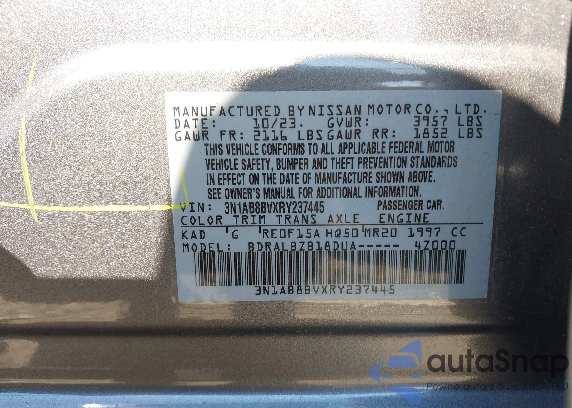 • VIN 3N1AB8BVXRY237445