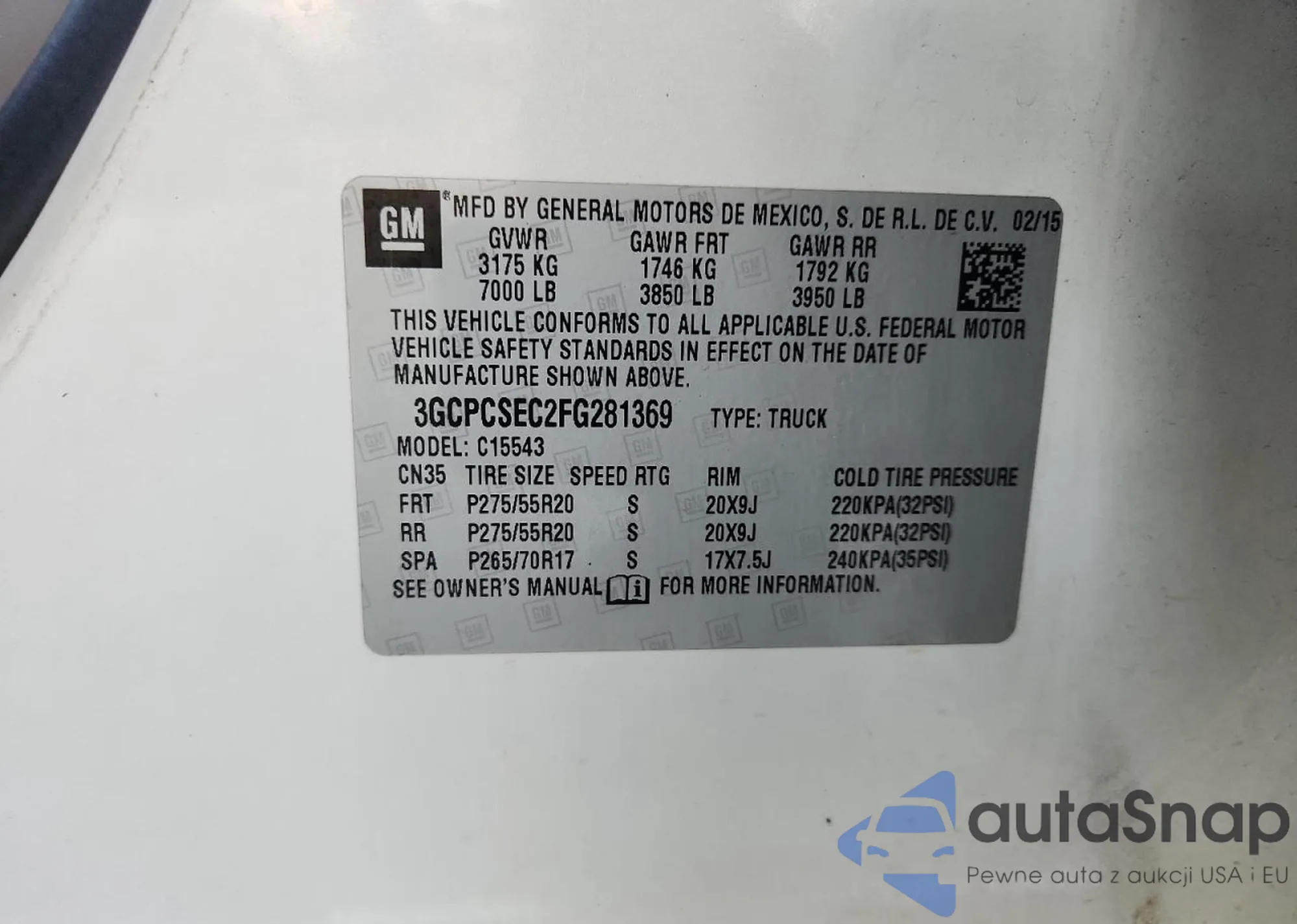 • VIN 3GCPCSEC2FG281369