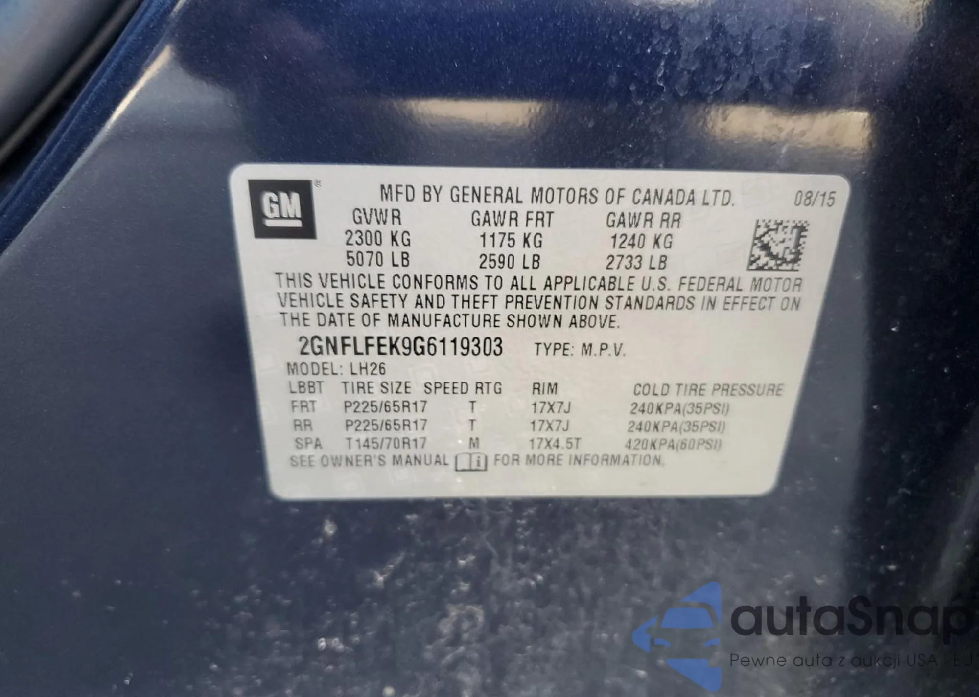 • VIN 2GNFLFEK9G6119303