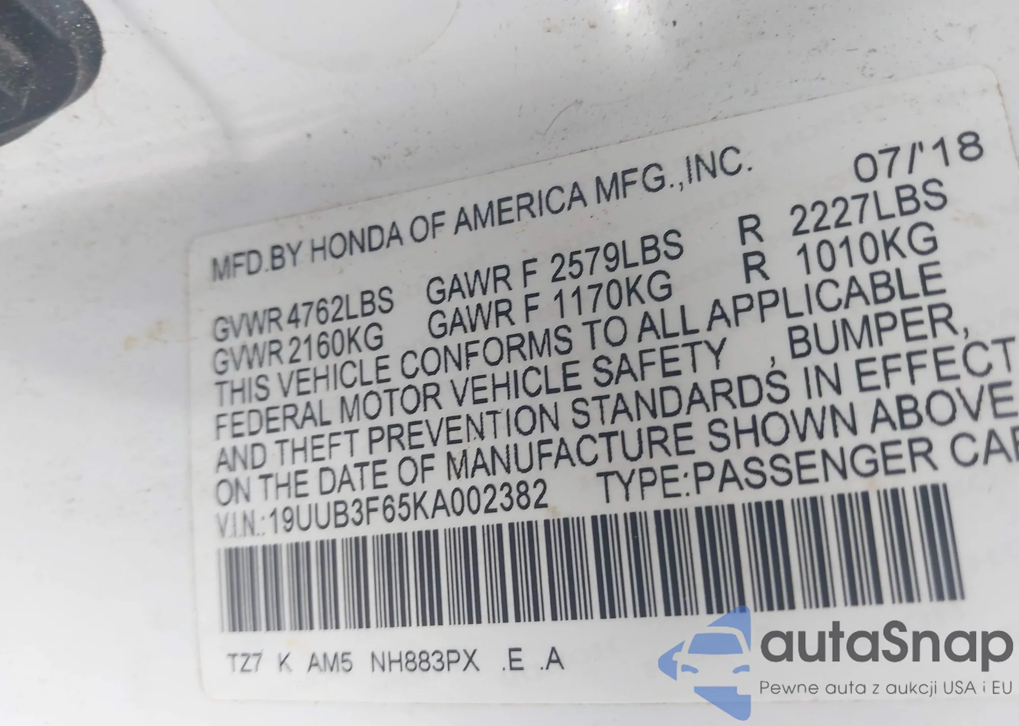 • VIN 19UUB3F65KA002382