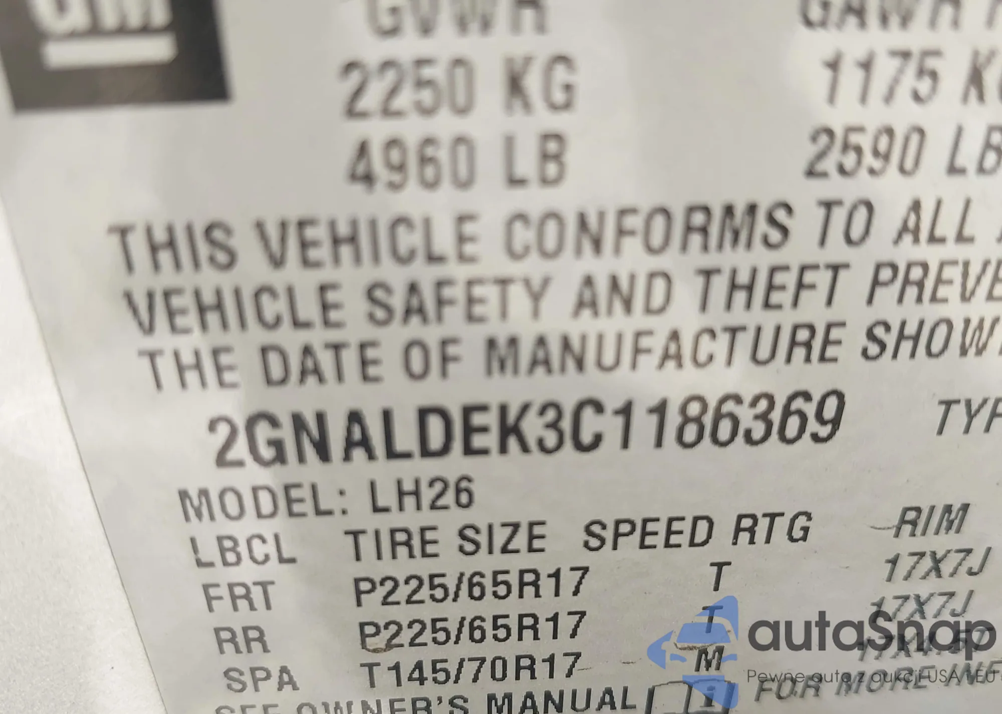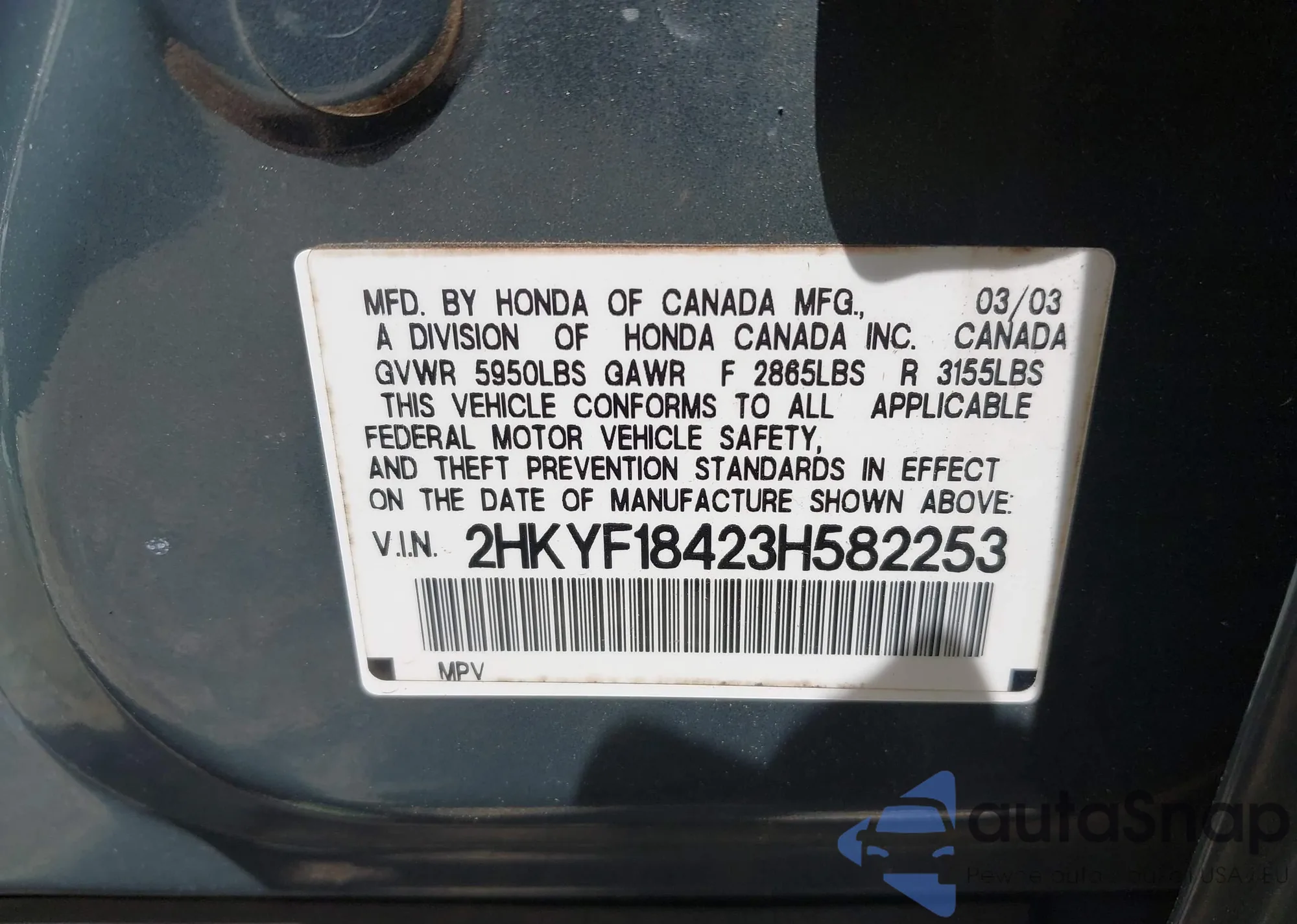 LOT: 43049636 VIN: 2HKYF18423H582253