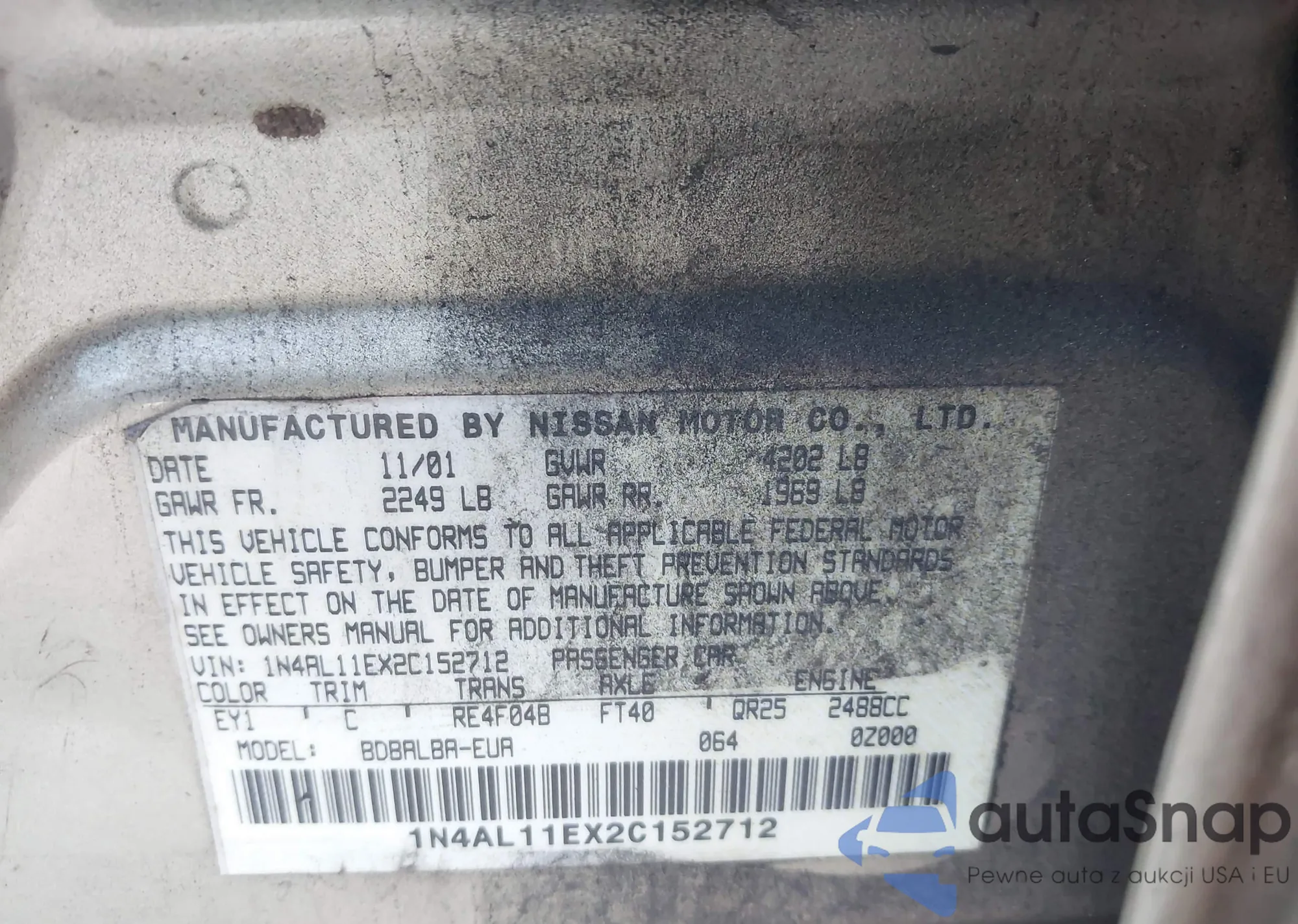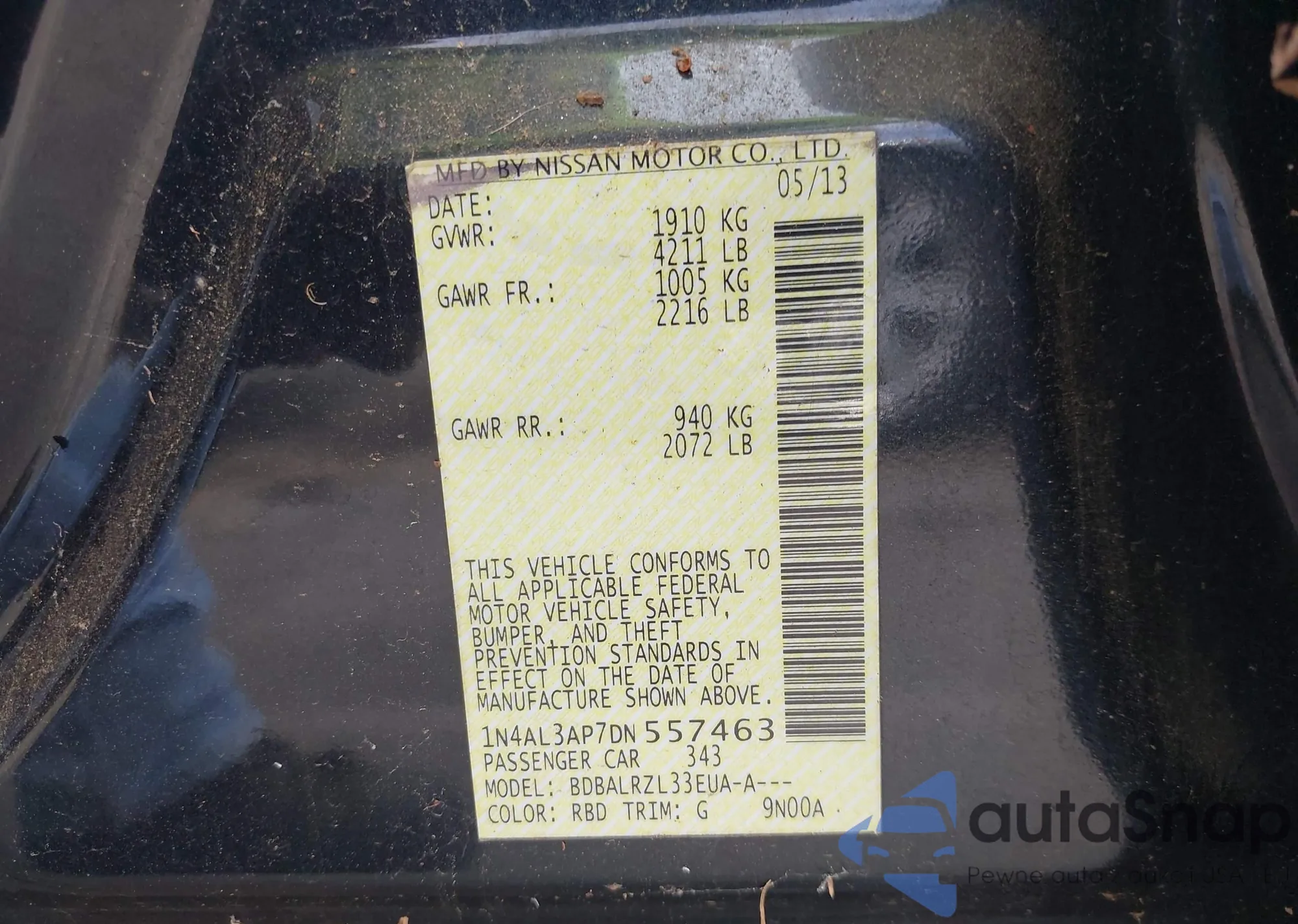 • VIN 1N4AL3AP7DN557463