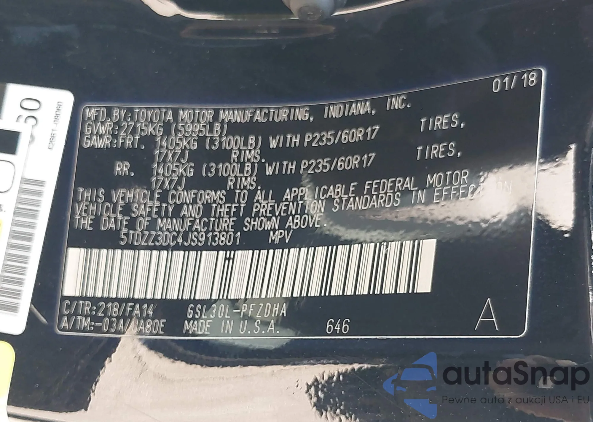• VIN 5TDZZ3DC4JS913801