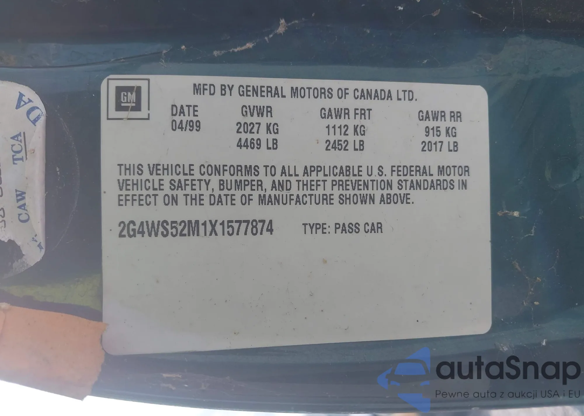 LOT: 43127174 VIN: 2G4WS52M1X1577874