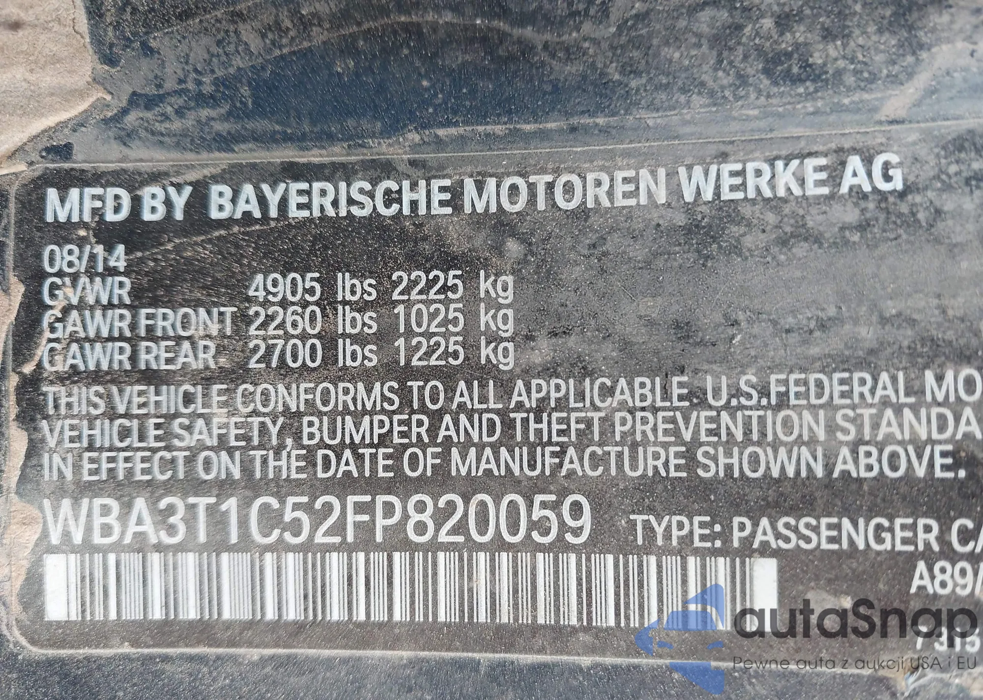 • VIN WBA3T1C52FP820059
