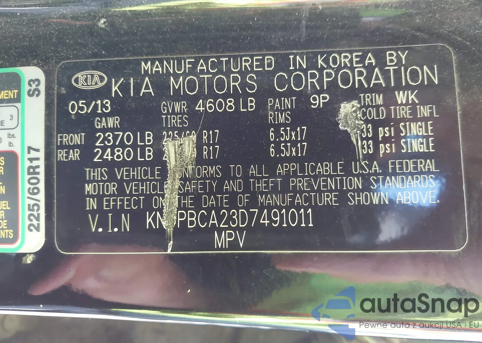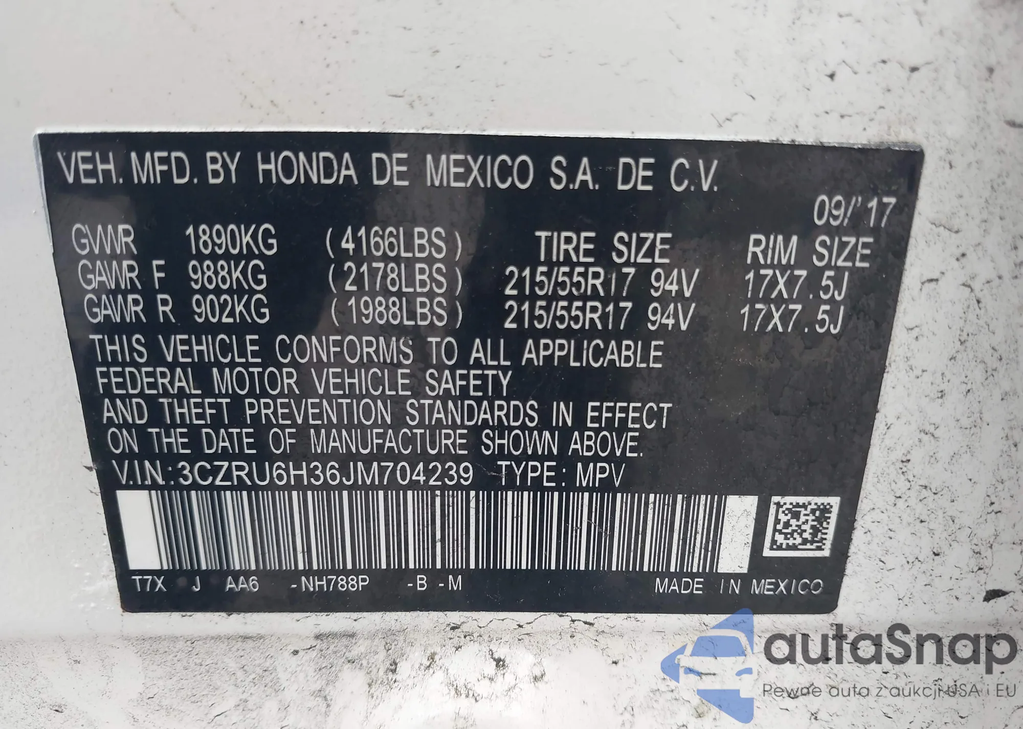 • VIN 2HKRM3H7XDH523999