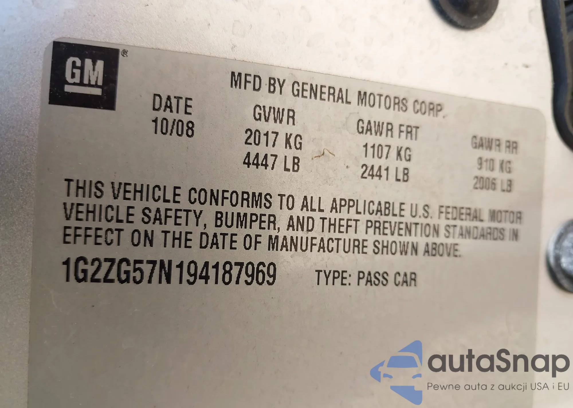 LOT: 43122508 VIN: 1G2ZG57N194187969