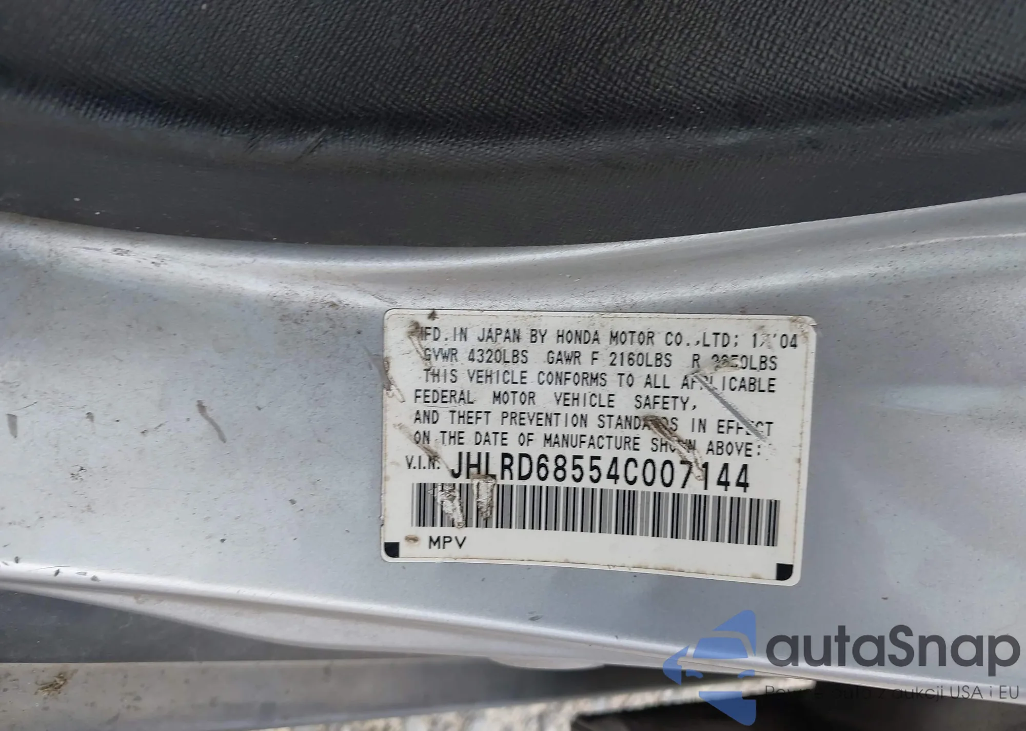 • VIN JHLRD68554C007144