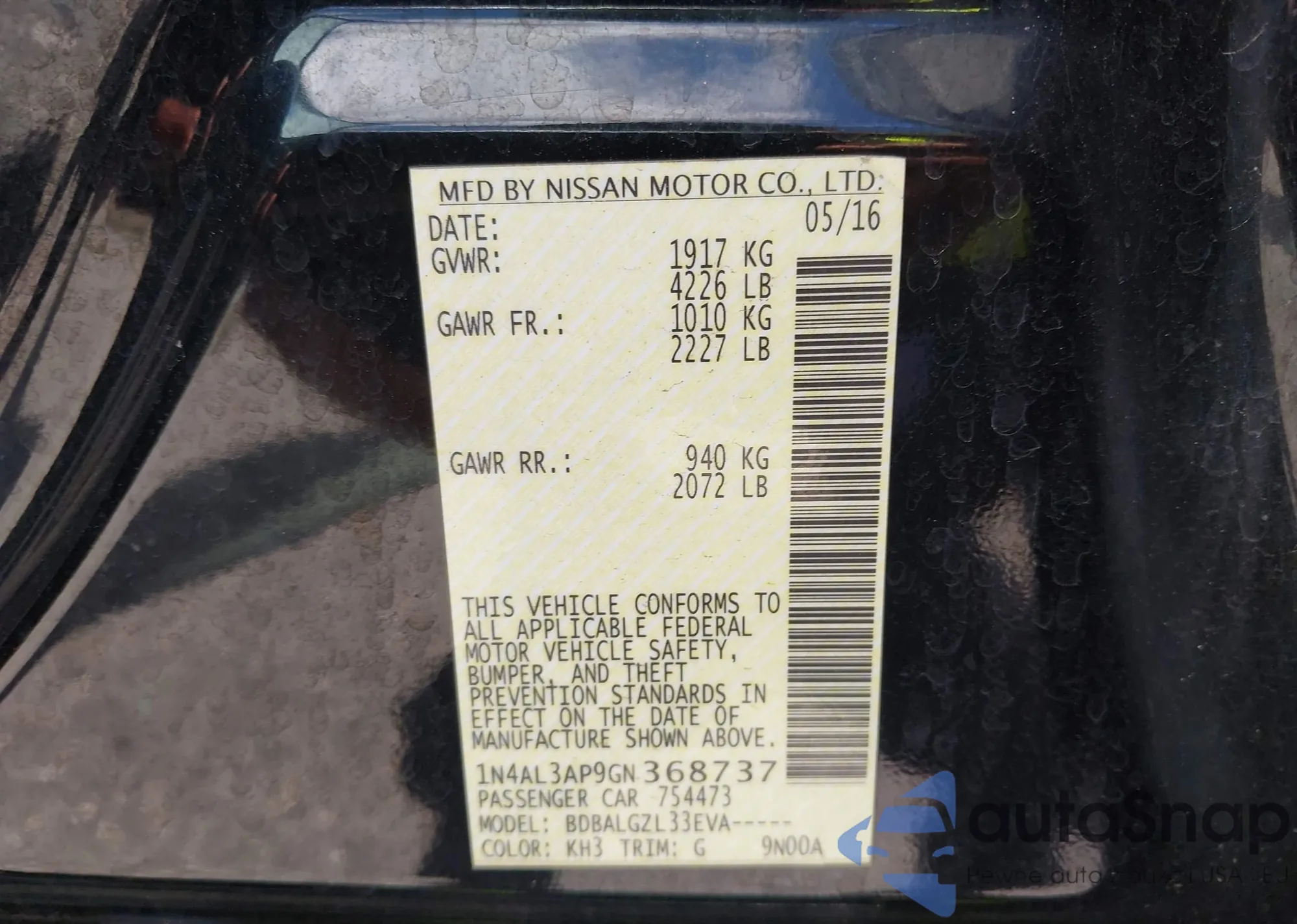• VIN 1N4AL3AP7DN531851