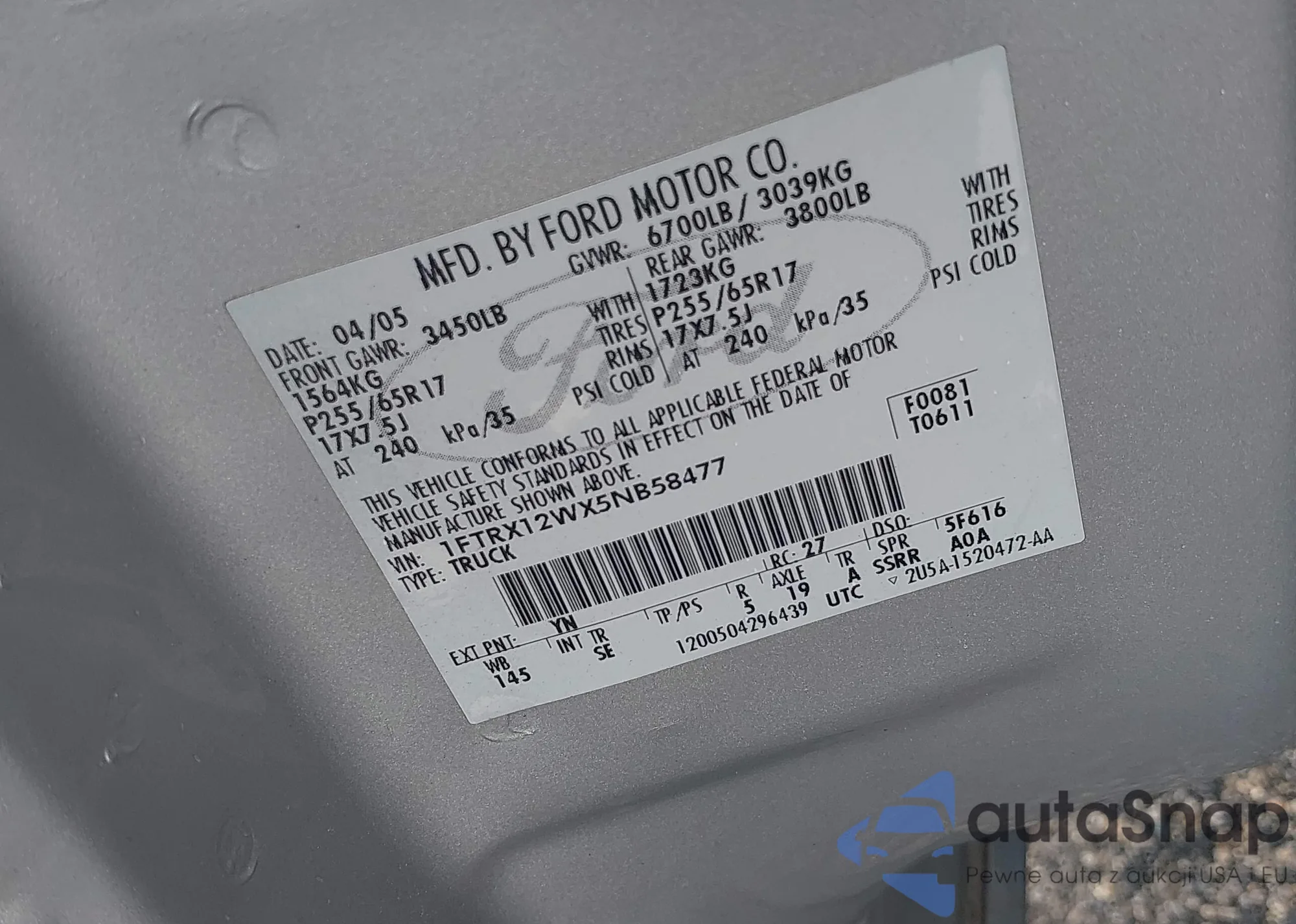 • VIN 1FTRX12WX5NB58477