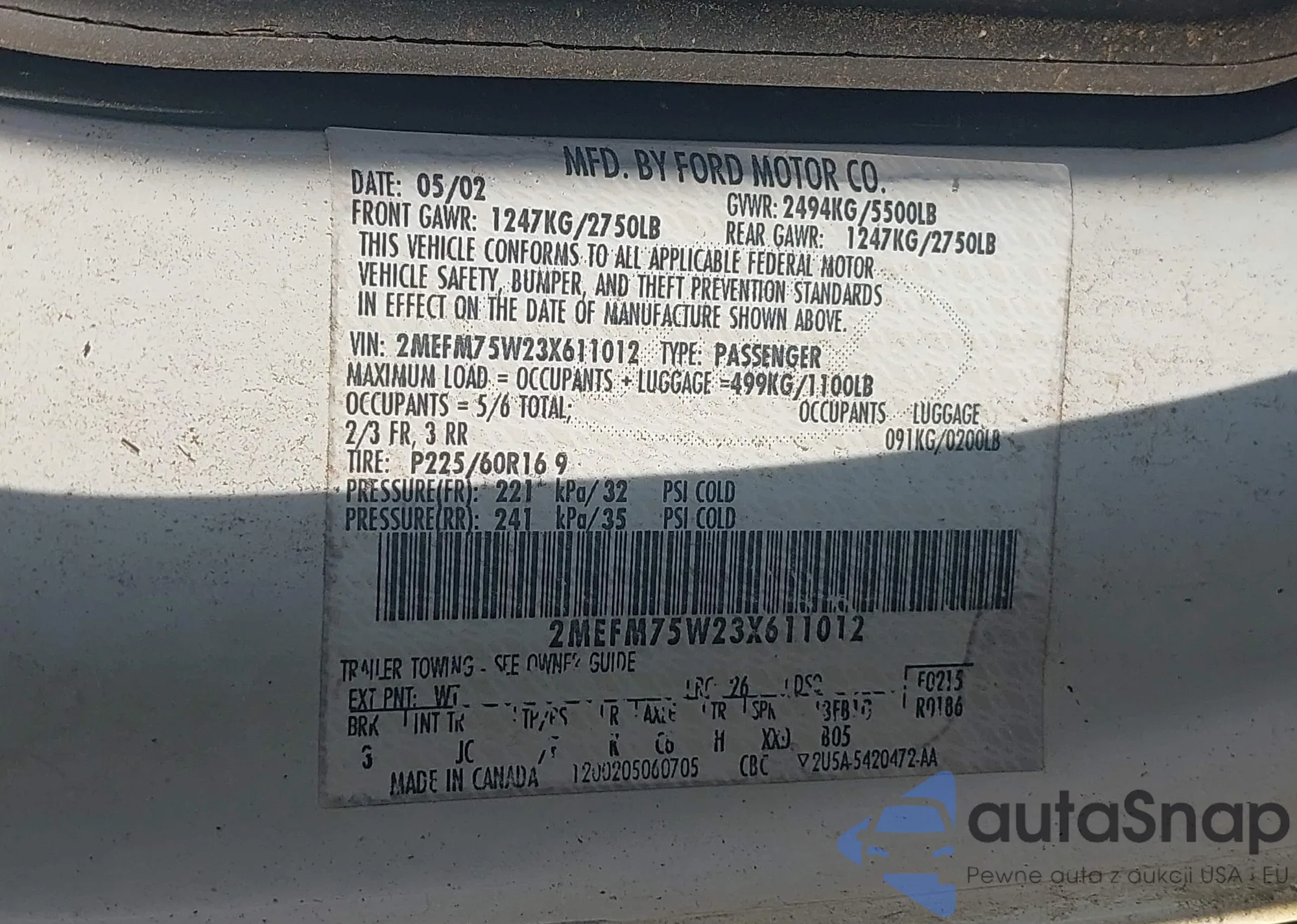 • VIN 2MEFM75W23X611012