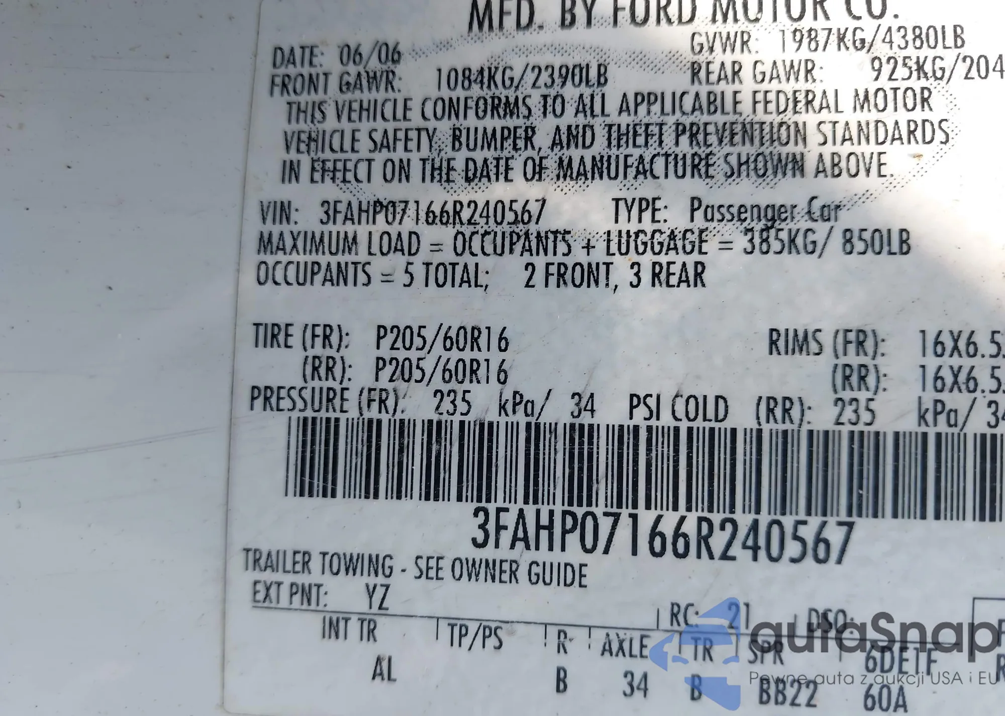 LOT: 43125540 VIN: 4T1BK36B57U215840