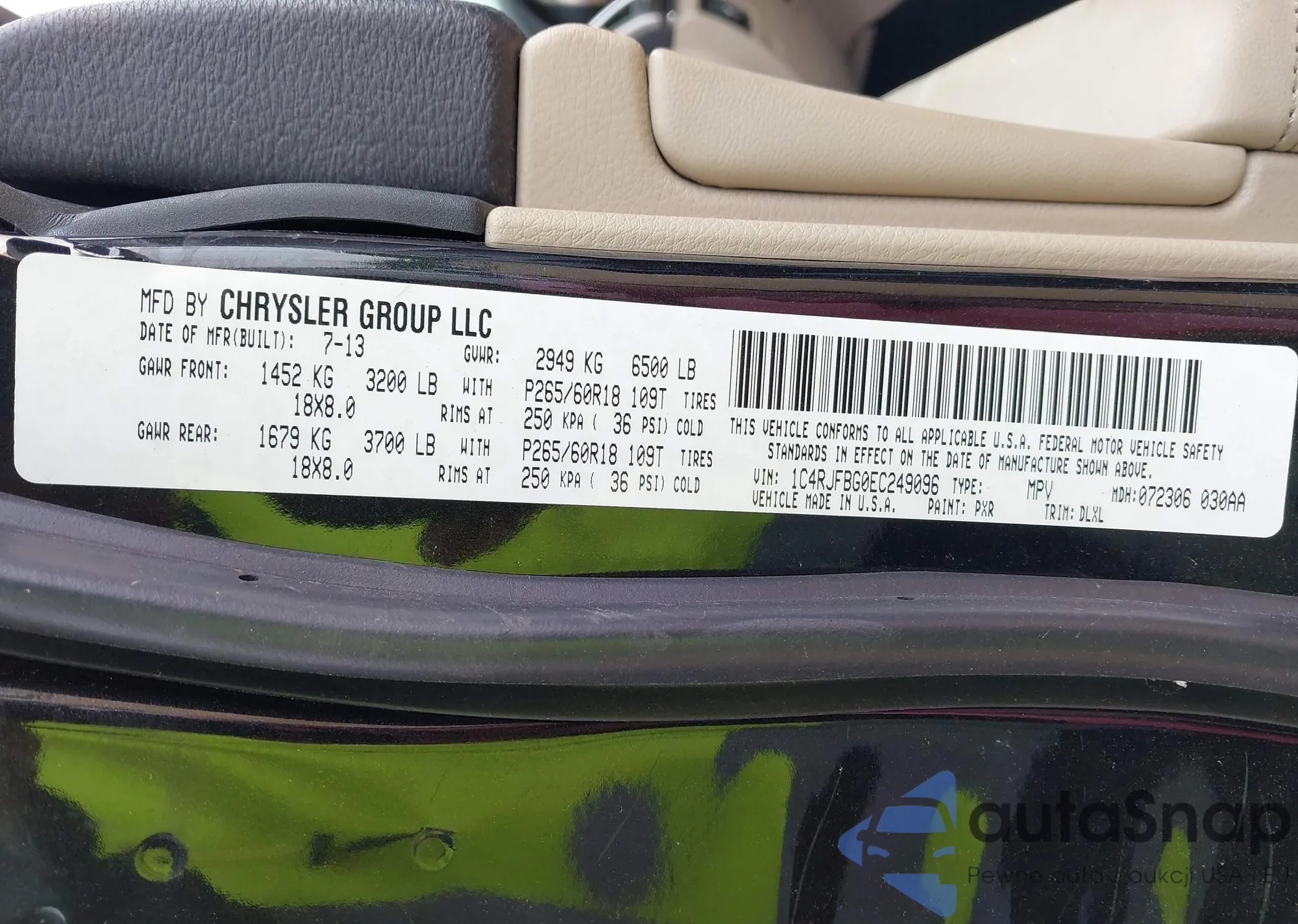 • VIN 1C4RJFBG0EC249096