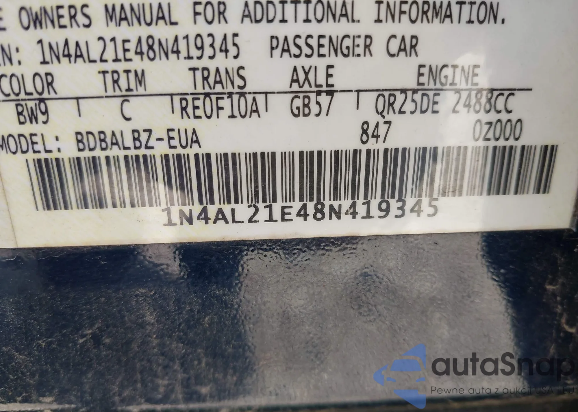 • VIN 1N4AL2AP7BC181737