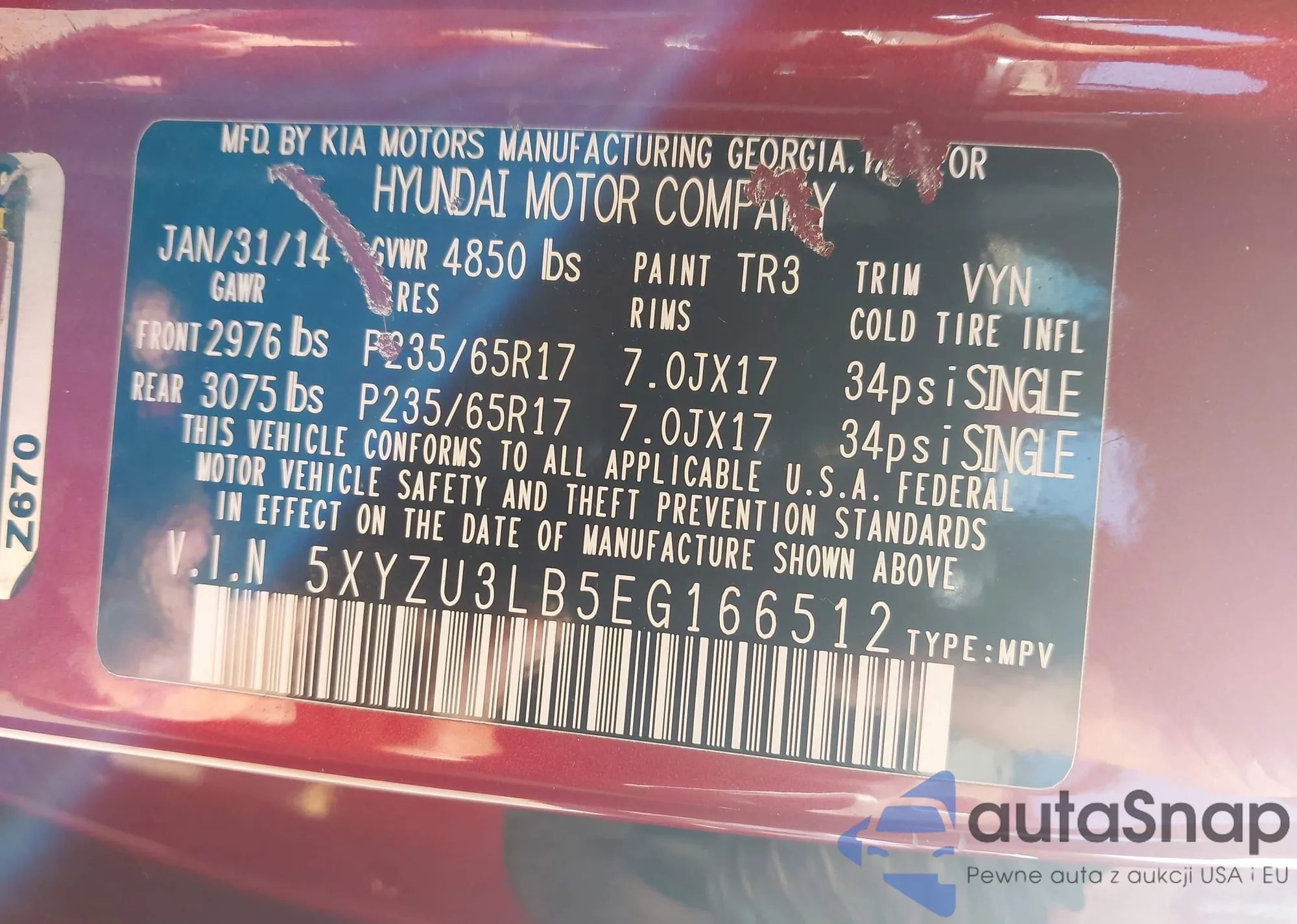 • VIN 5XYZU3LB5EG166512