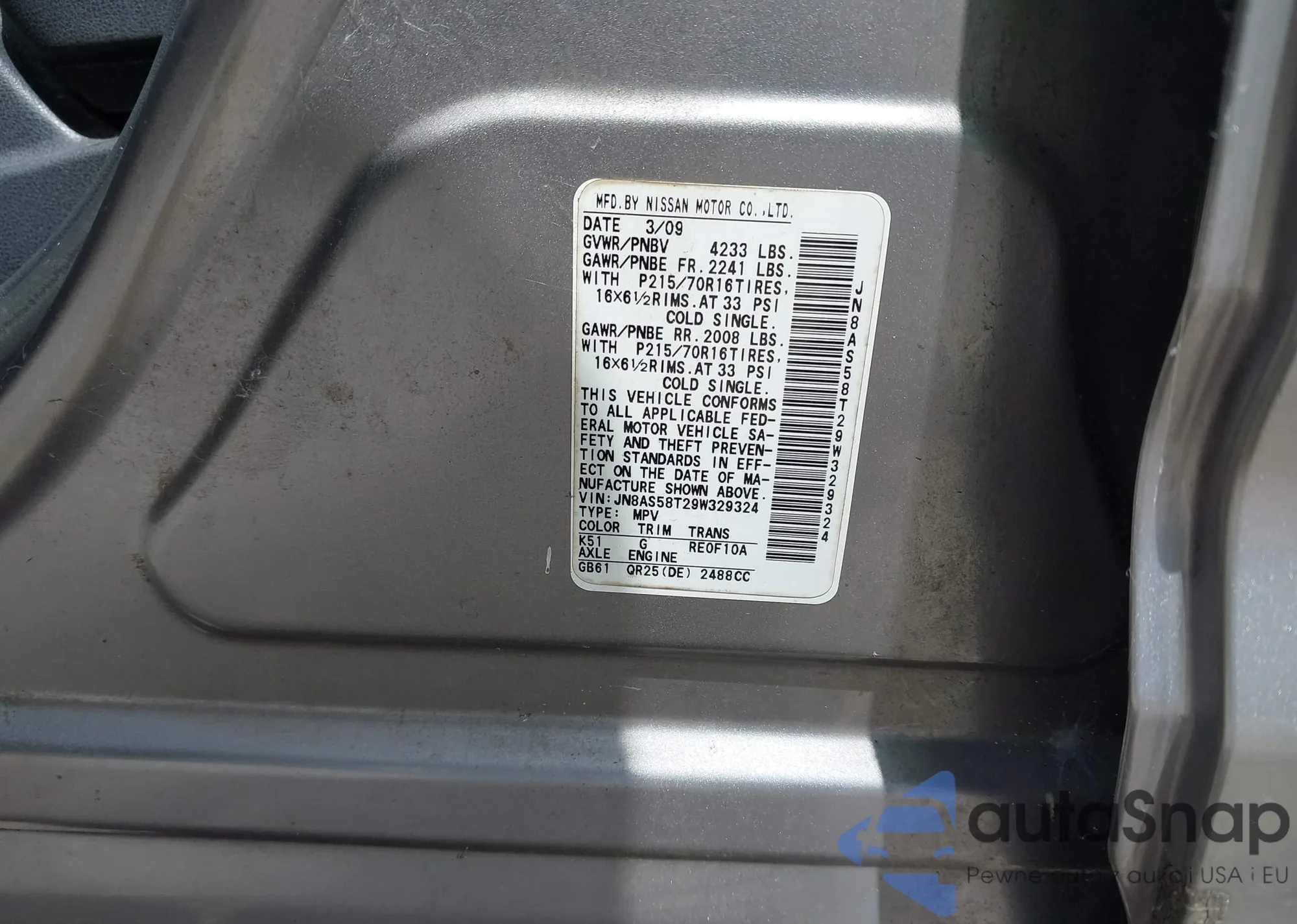 • VIN JN8AF5MR4DT221716