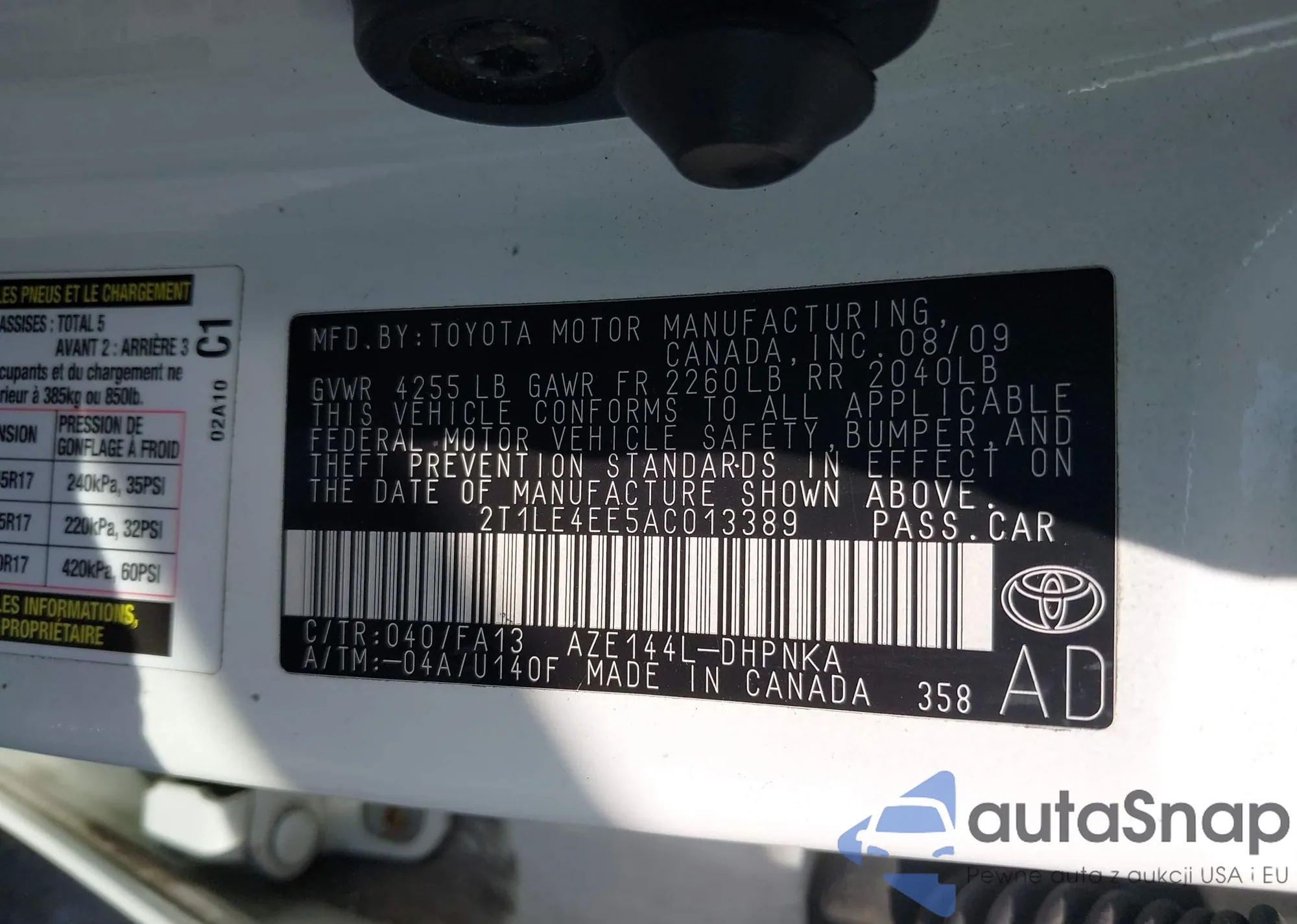 • VIN 2T1LE4EE5AC013389