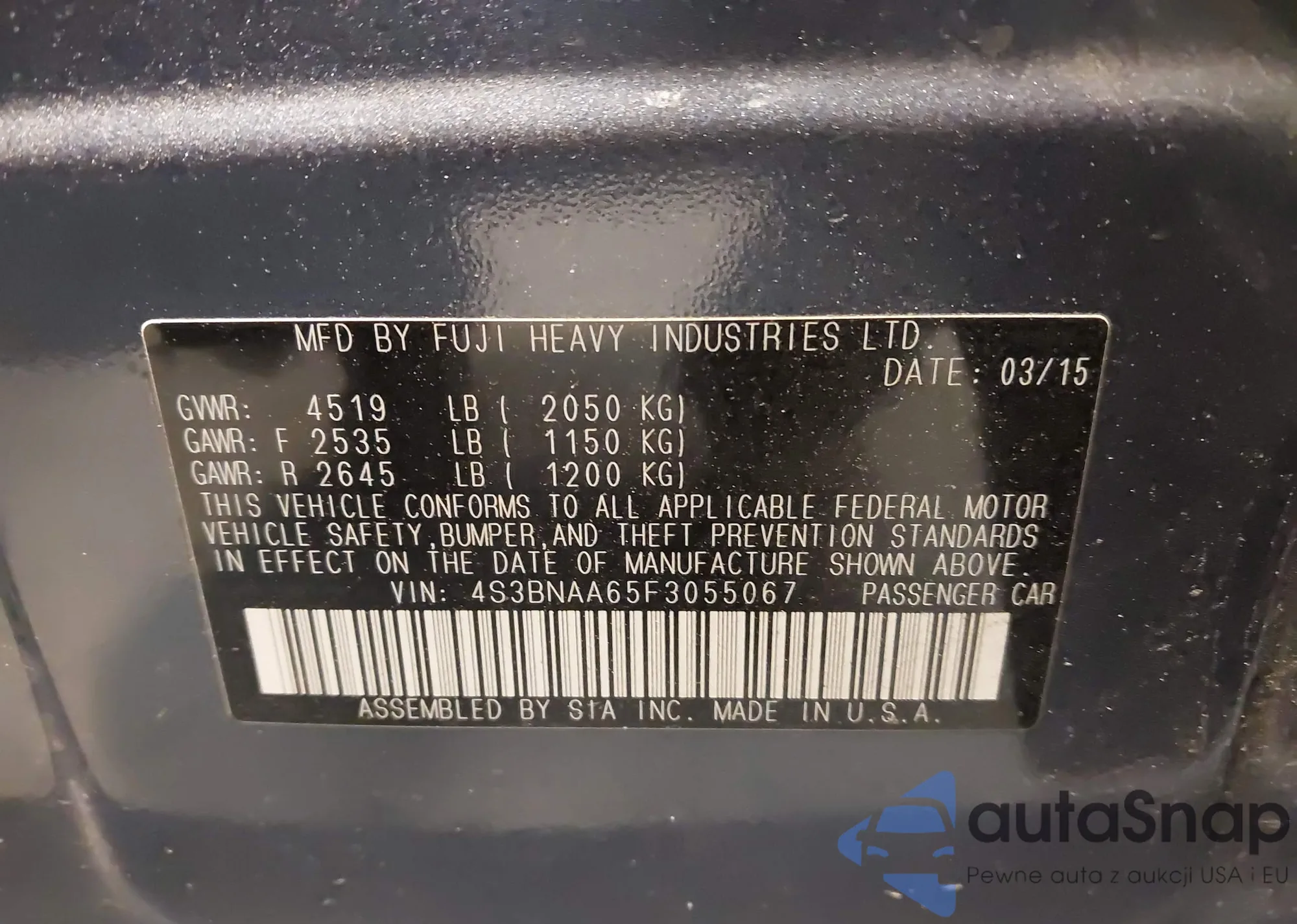 LOT: 42859166 VIN: 4S3BNAA65F3055067