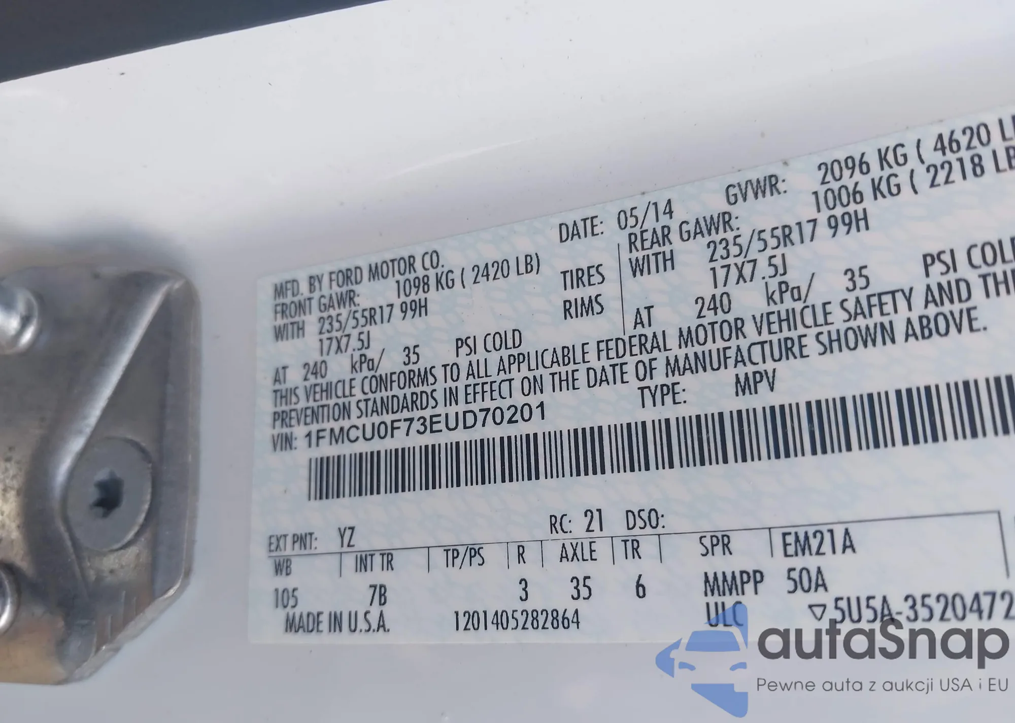 LOT: 43093204 VIN: 1FMCU0F73EUD70201